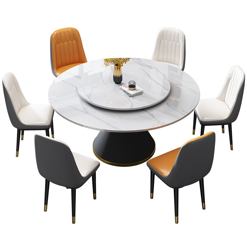 Italian Modern Simple Generation Stone Plate Dining Table round Stone Plate Light Luxury Dining Table and Chair Assemblage Zone Turntable Household Small Household