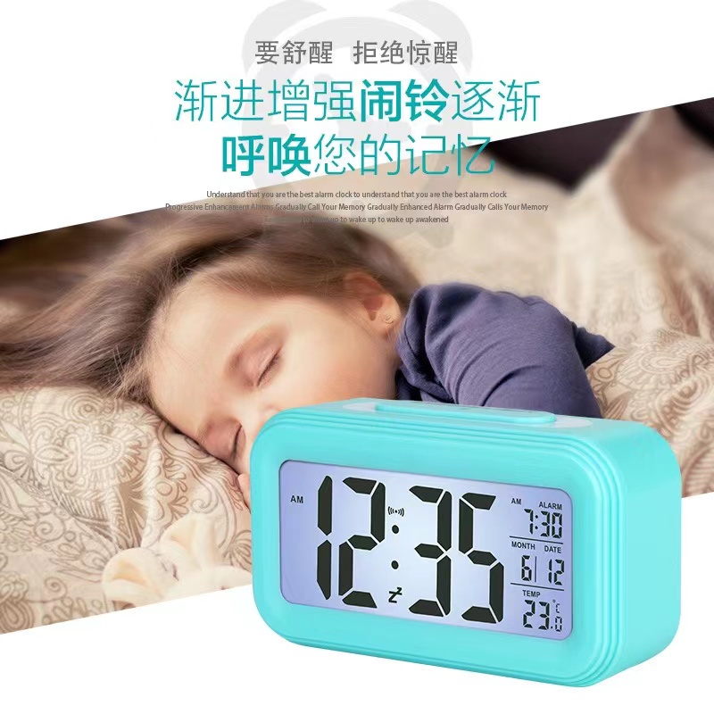 Js-160 Large Screen LCD Electronic Clock Chinese Time Sensitive Light Smart Clock Luminous Mute Alarm Clock 中文版