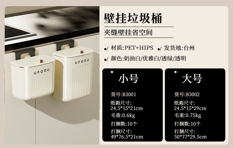 small size wall-mounted trash can-cream white