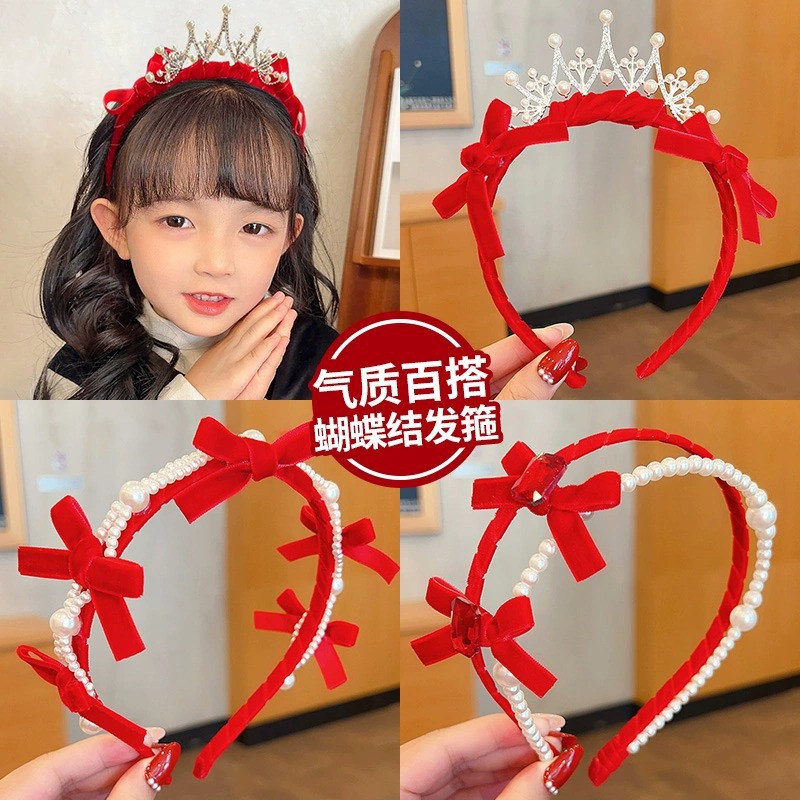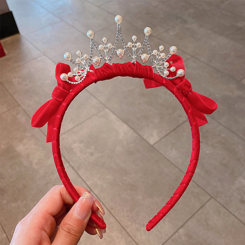 Internet Celebrity Children's New Year New Velvet Red Crown Hair Clasp Does Not Hurt Hairpin Headdress Little Princess New Year Headband 中文版