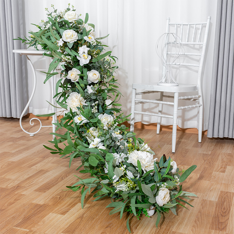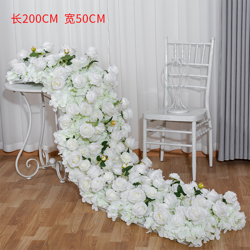 new artificial rose wall dining table layout long row flower exhibition hall window outdoor wedding decoration trailing artificial flower