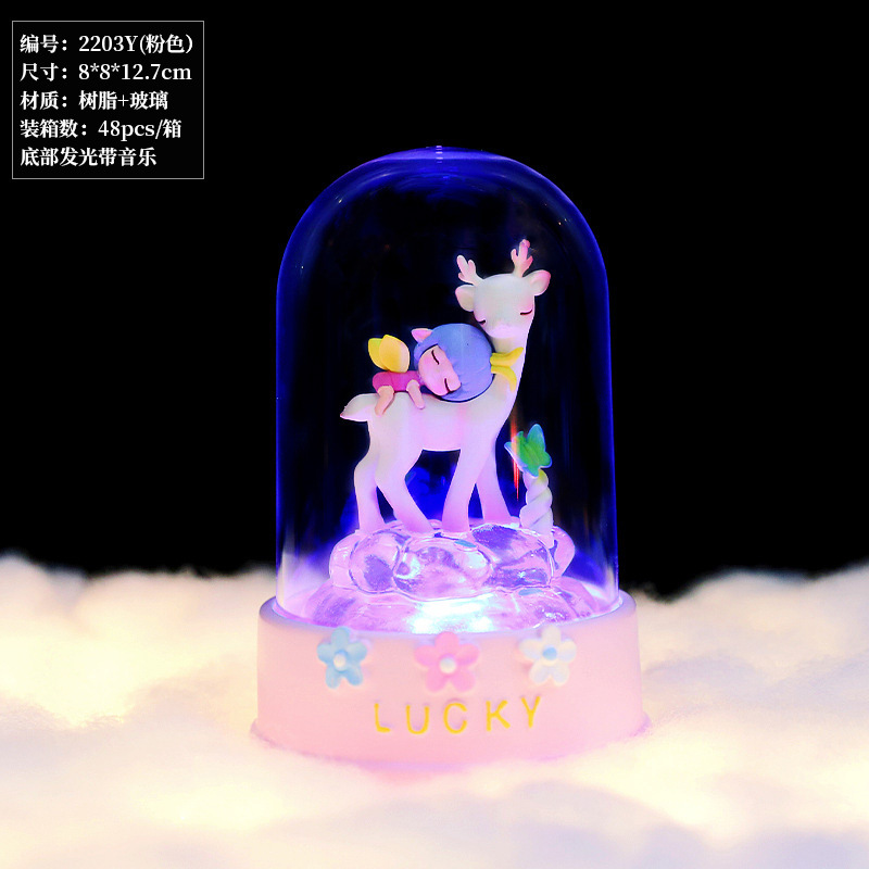 【Product Name】2203Y Music Star Lamp - Deer and Flowers 【Product Material】Resin + Glass