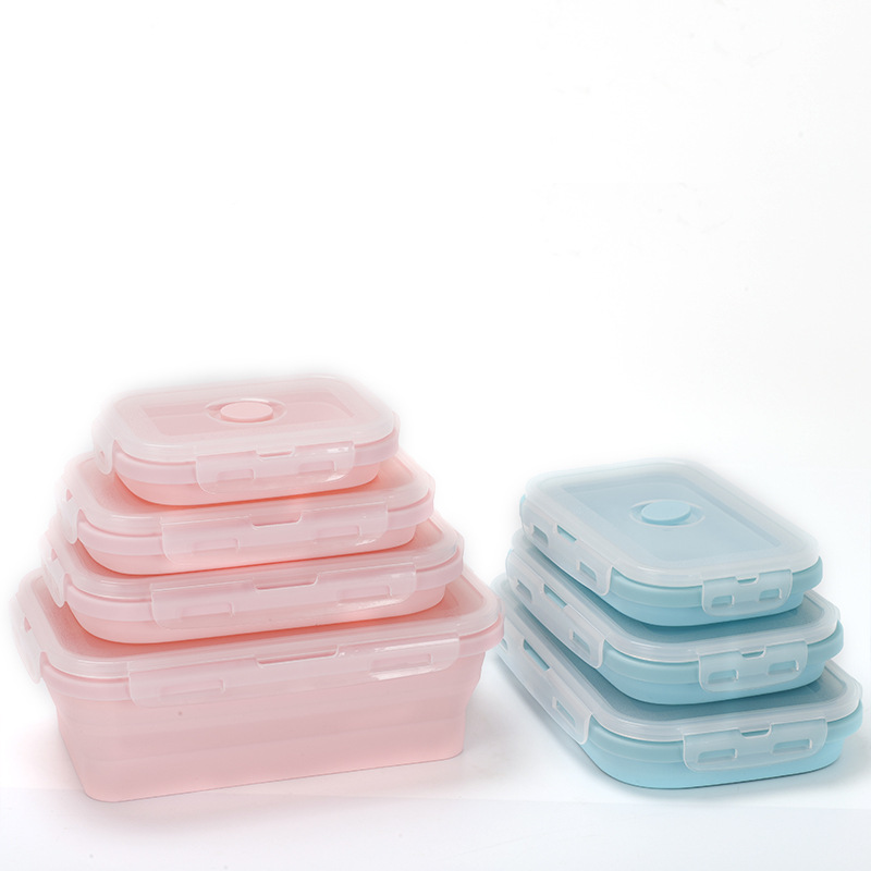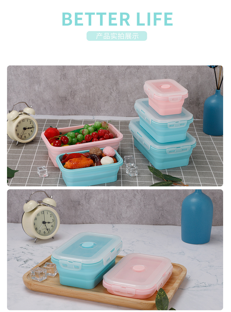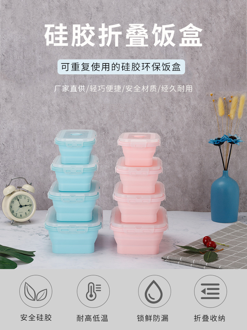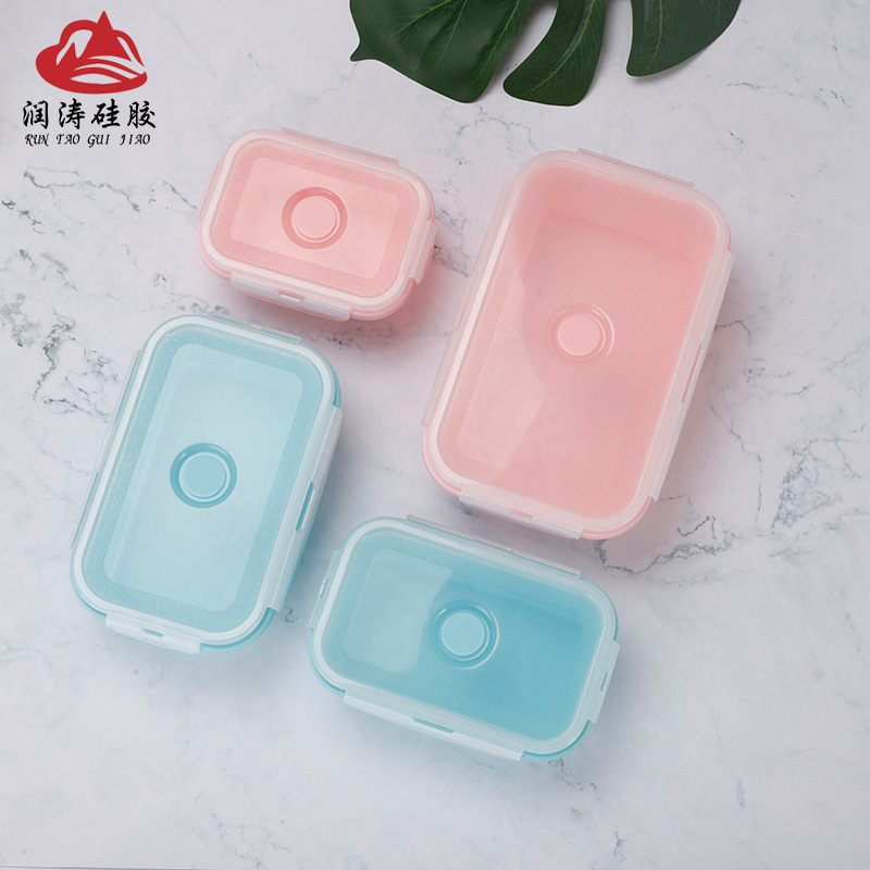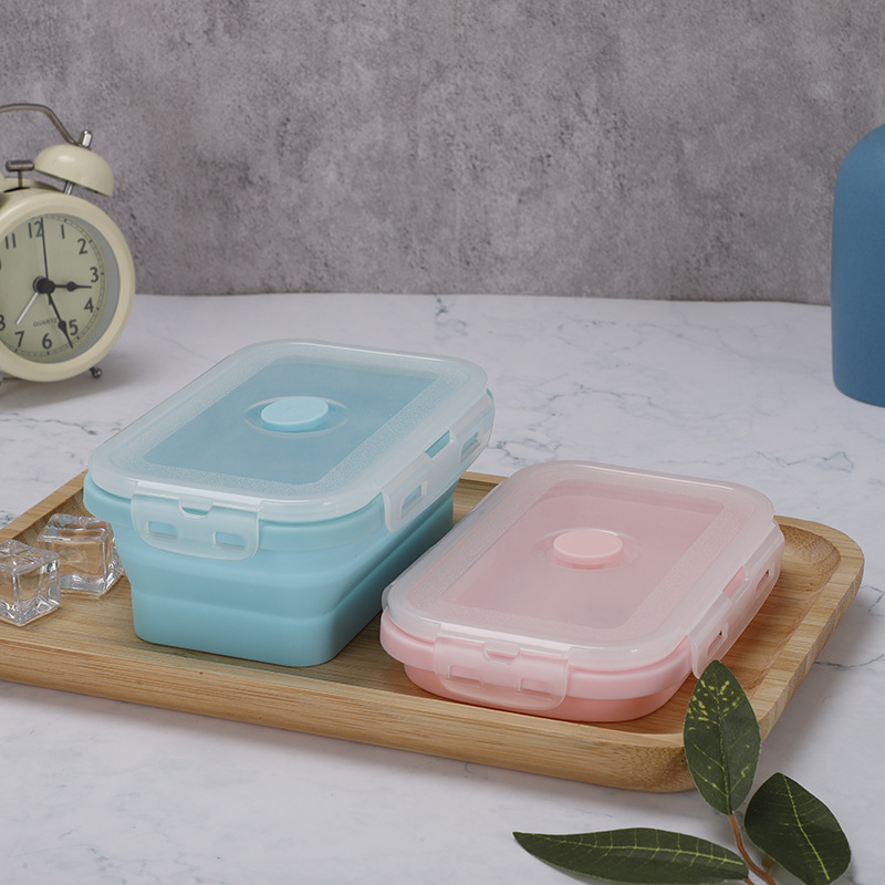 portable folding square silicone lunch box microwave sealed lunch box fda lunch crisper