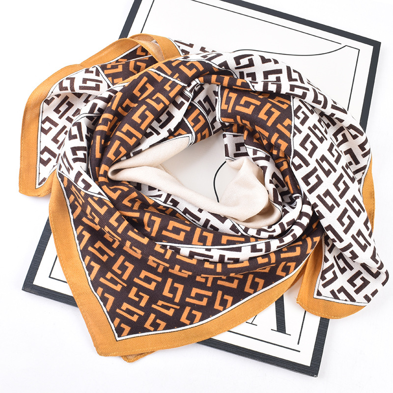 2023 new korean style round geometric scarf fashion scarf herringbone velvet 90 silk scarf women's scarf large kerchief shawl