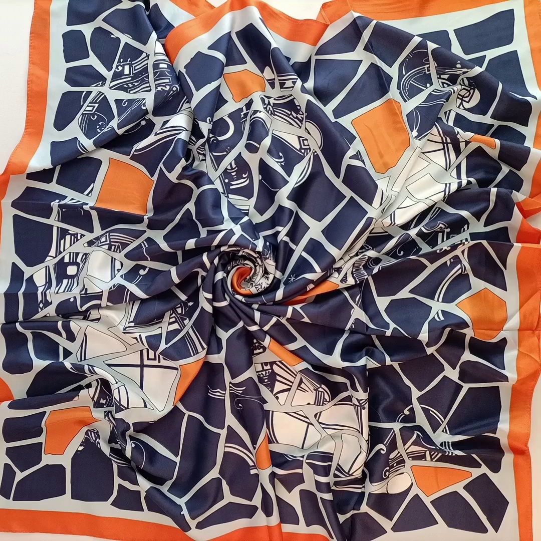 2023 new korean style round geometric scarf fashion scarf herringbone velvet 90 silk scarf women's scarf large kerchief shawl 中文版