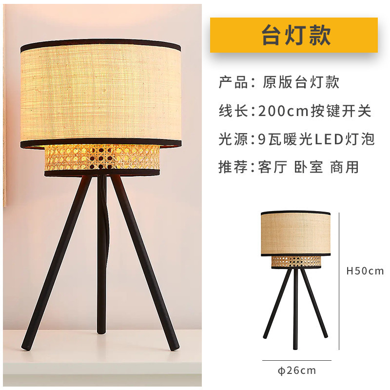 japanese-style rattan bamboo lamp bedroom bedside living room floor lamp quiet style retro bed & breakfast study dining table lamp 中文版