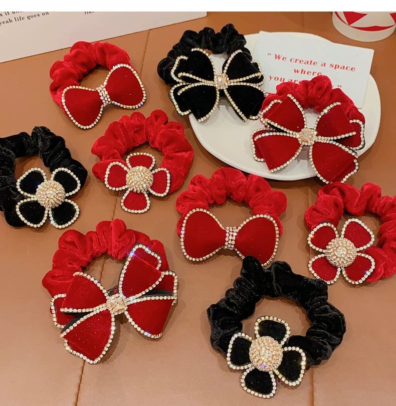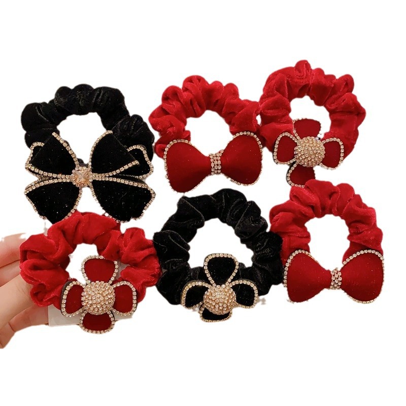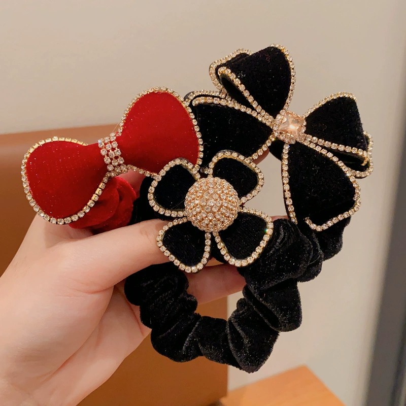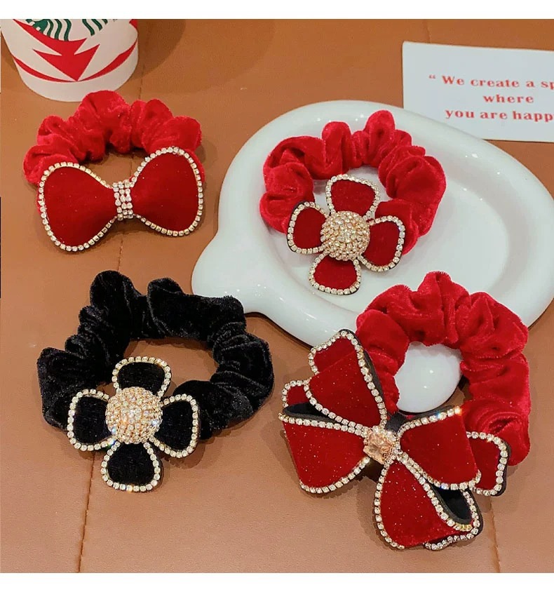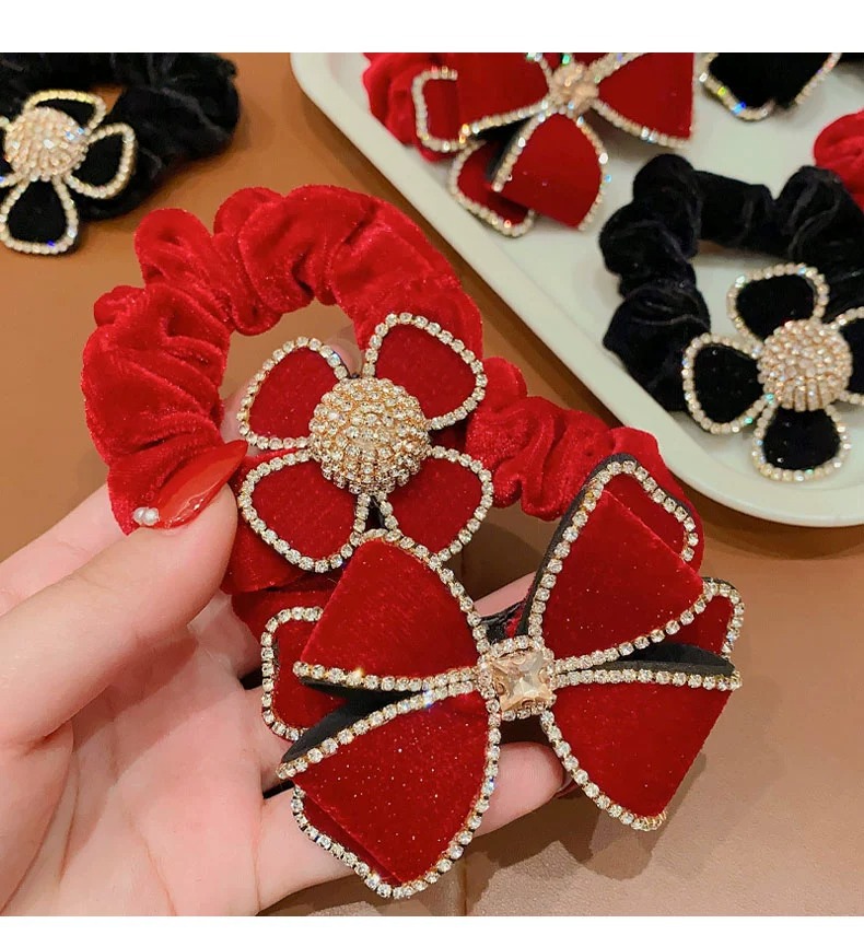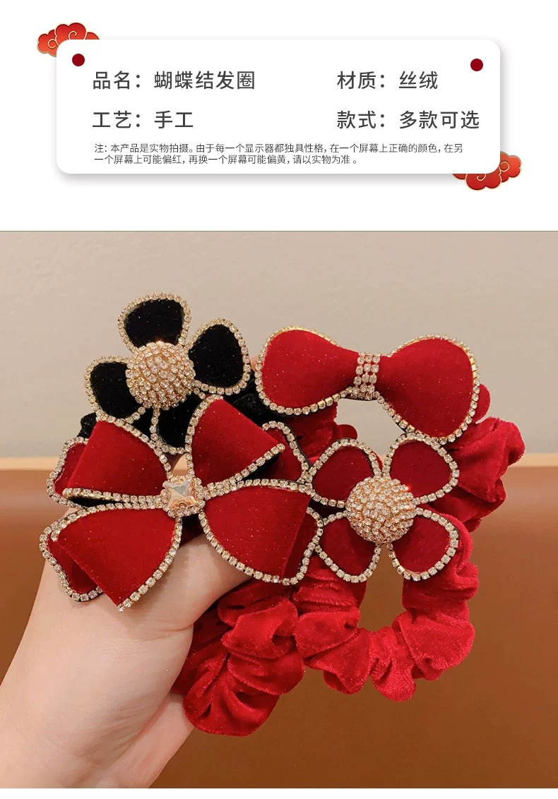 2023 new large intestine hair band children's head rope girls autumn and winter large velvet bow flower style hair band rubber band 中文版