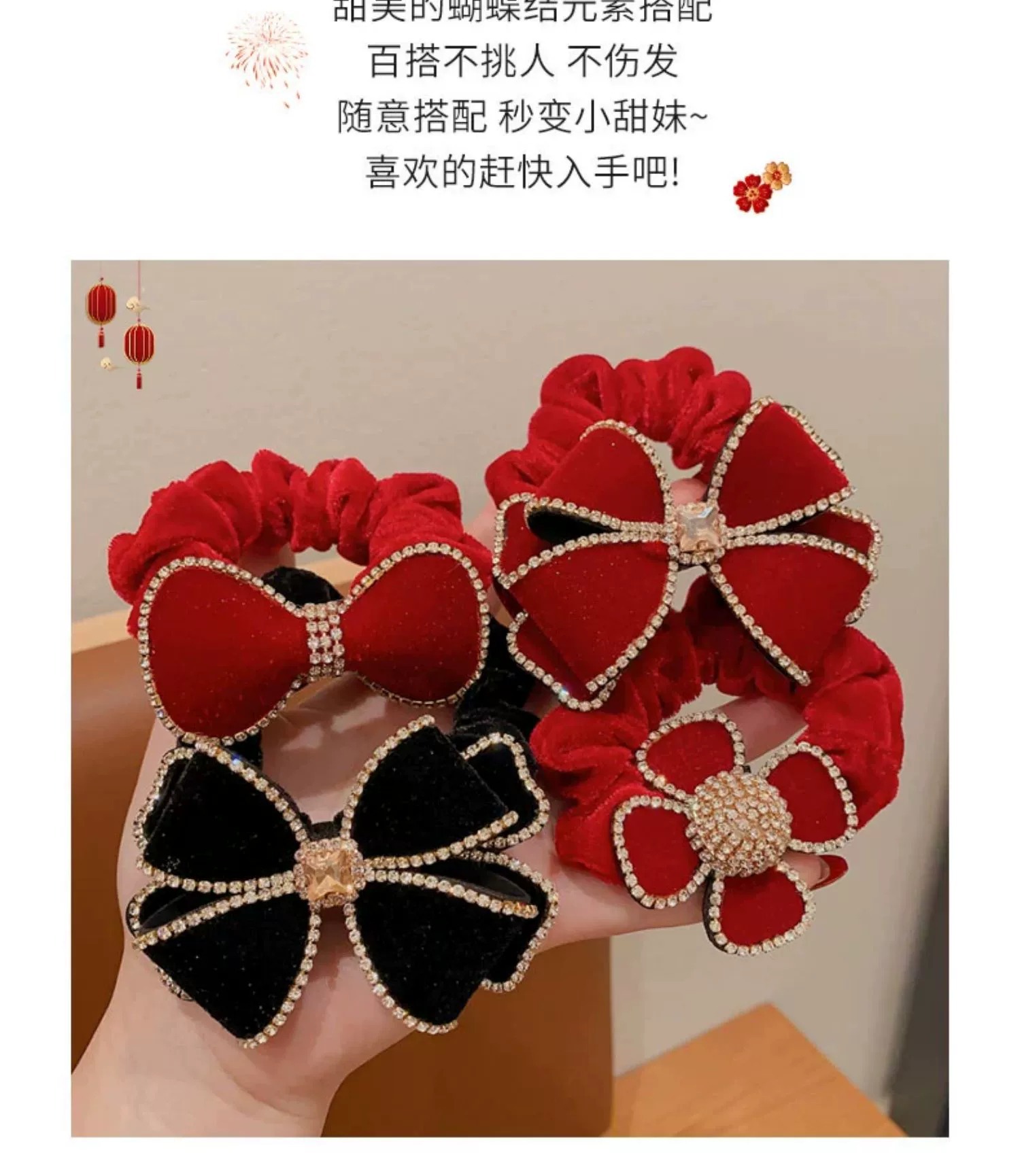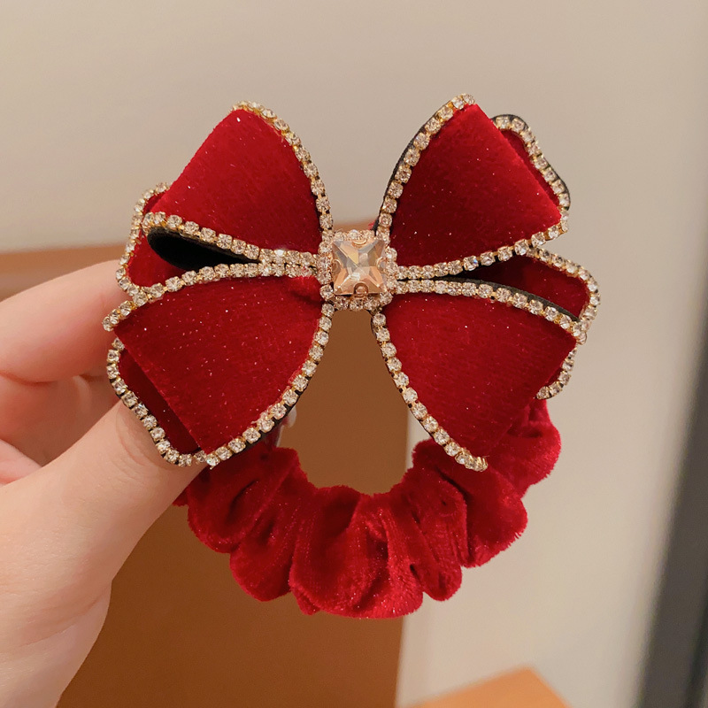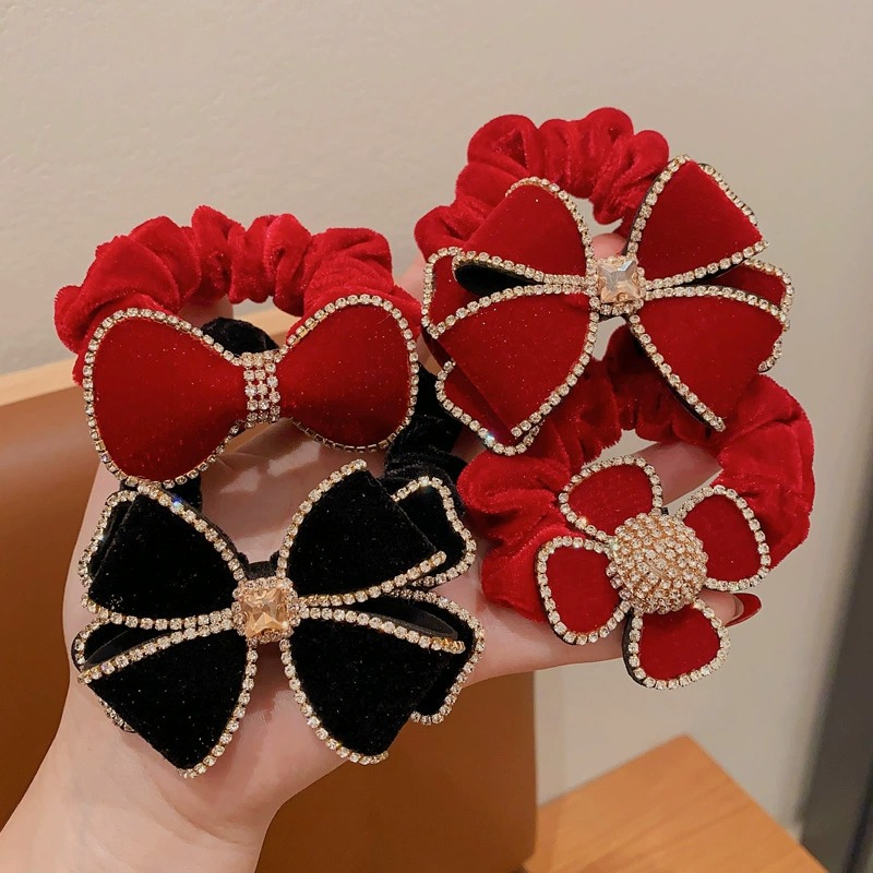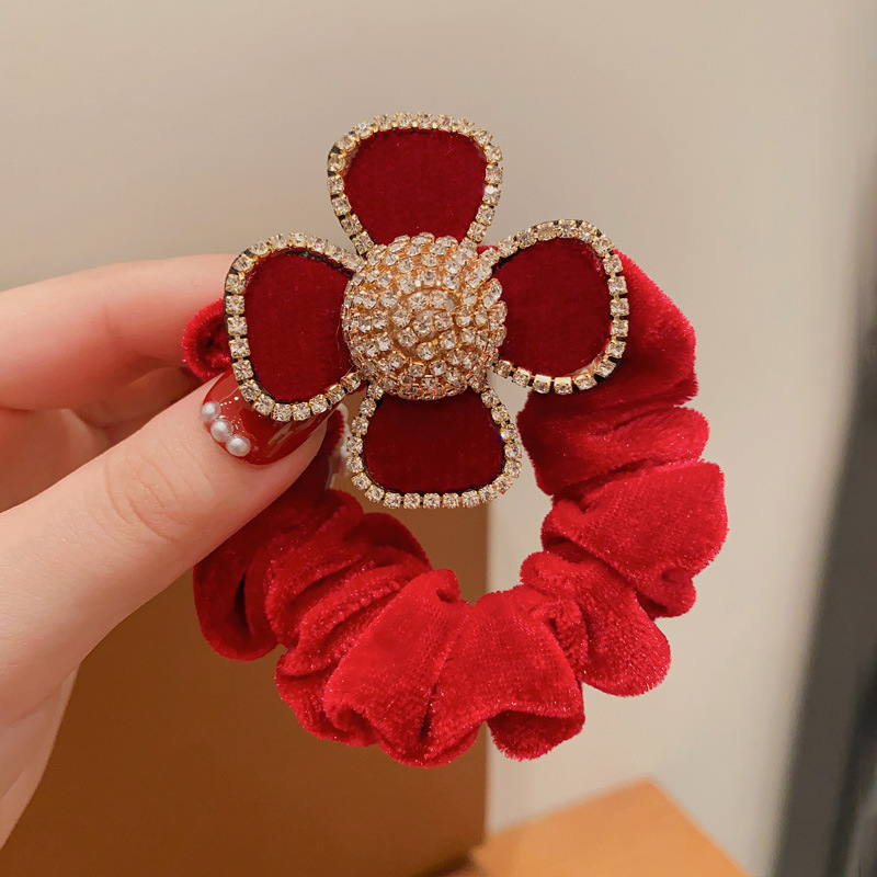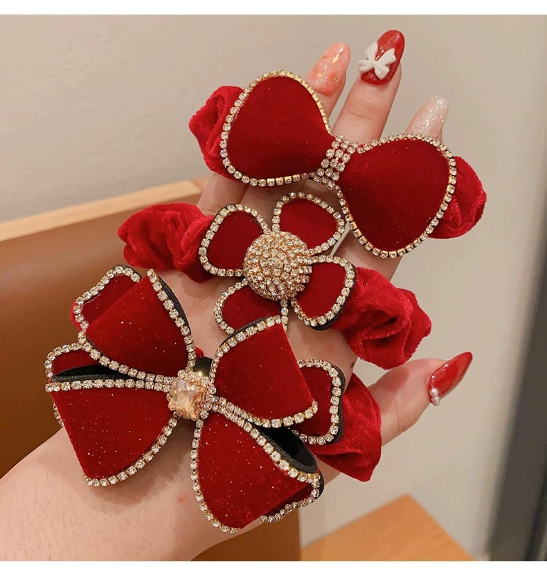 2023 new large intestine hair band children's head rope girls autumn and winter large velvet bow flower style hair band rubber band 中文版