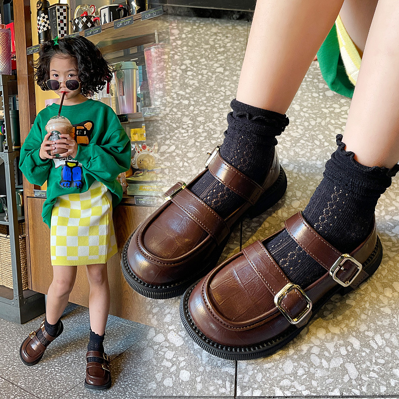 girls' leather shoes princess shoes 2024 spring and autumn new little girl black campus performance korean style children's shoes