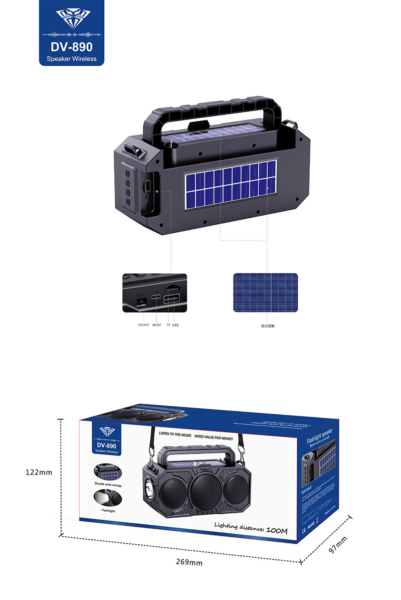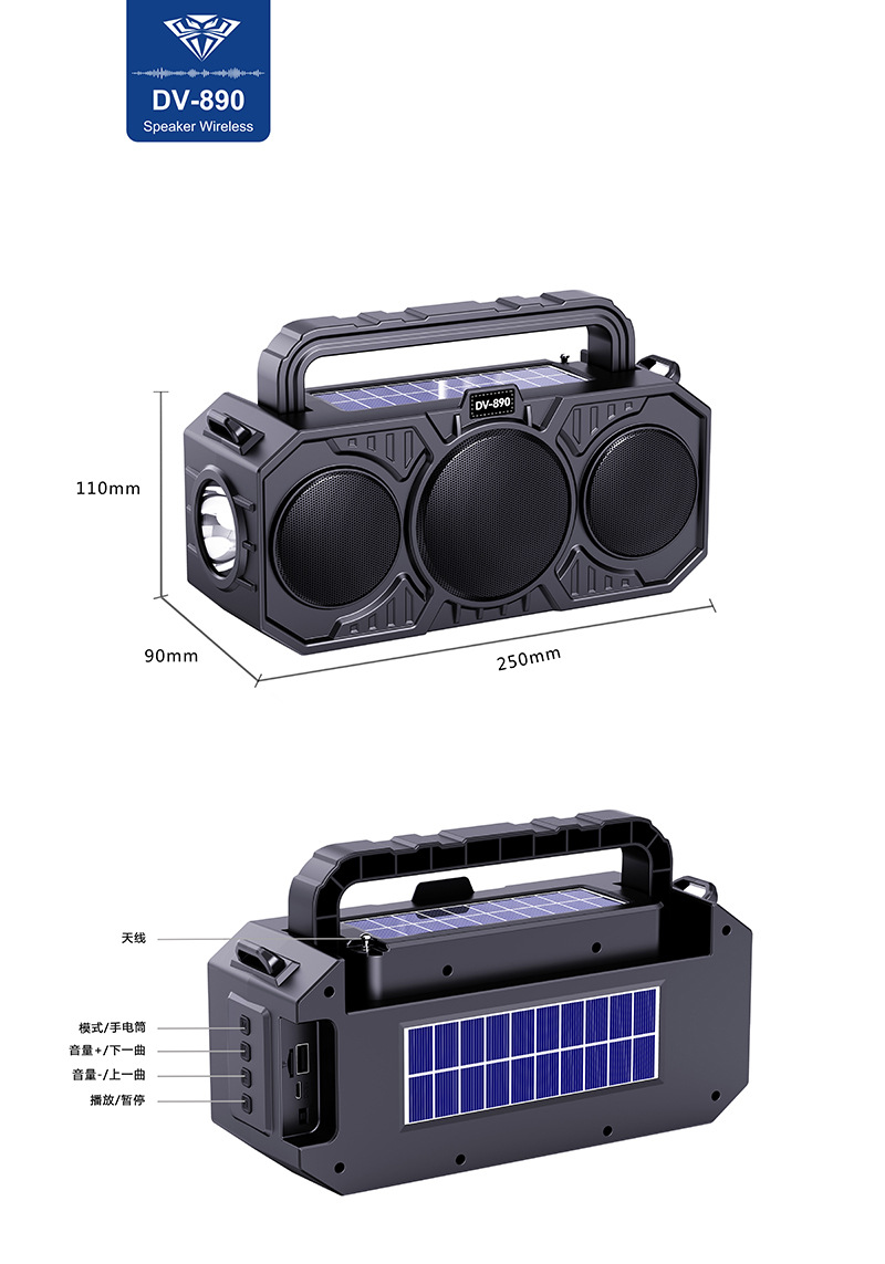 dual solar bluetooth speaker wireless speaker foreign trade outdoor large volume bluetooth speaker new hand-carrying