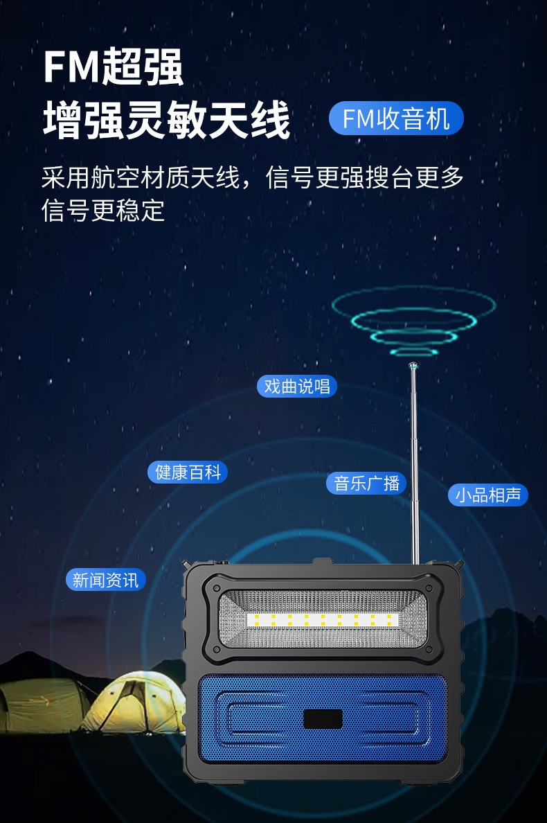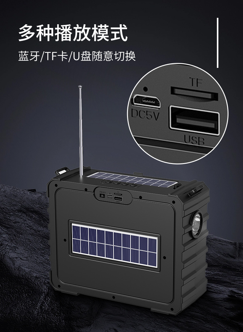 private model cross-border bluetooth audio wireless speaker dual solar led lights outdoor camping convenient fm radio