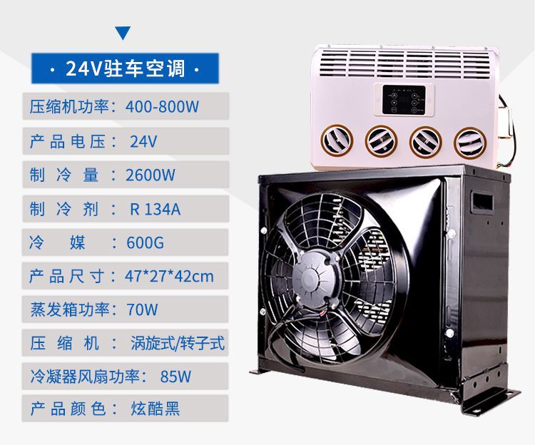 24v upgraded parking variable frequency air conditioner (black)
