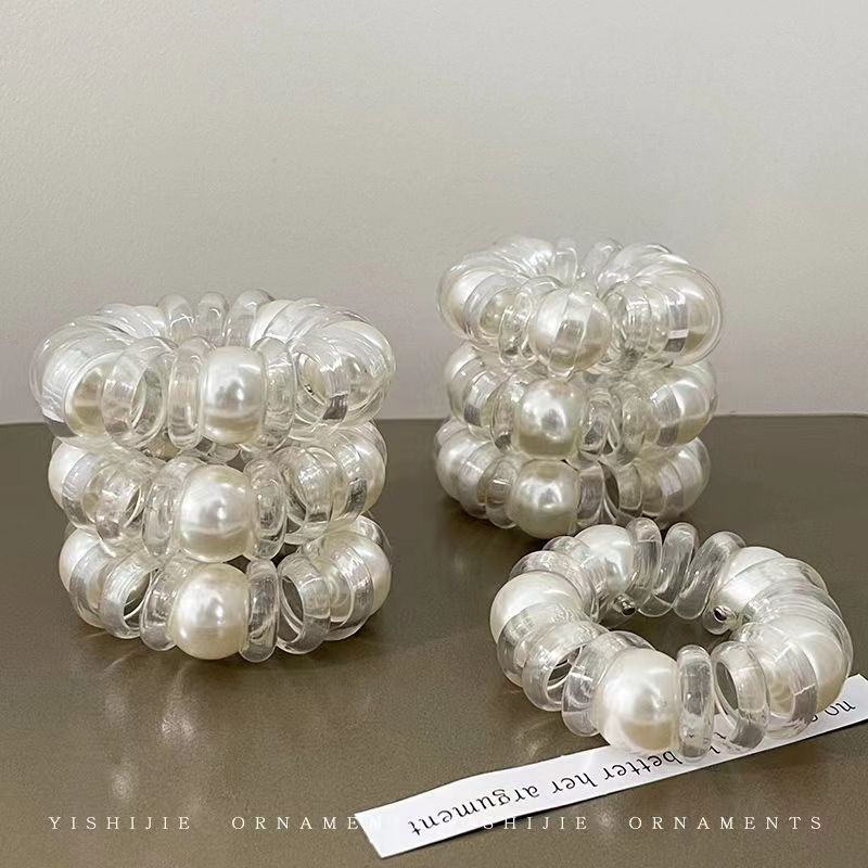 New Simple Pearl Transparent Phone Line Hair Ring Headwear Durable Rubber Band Hair Rope High Sense Elegant Headdress