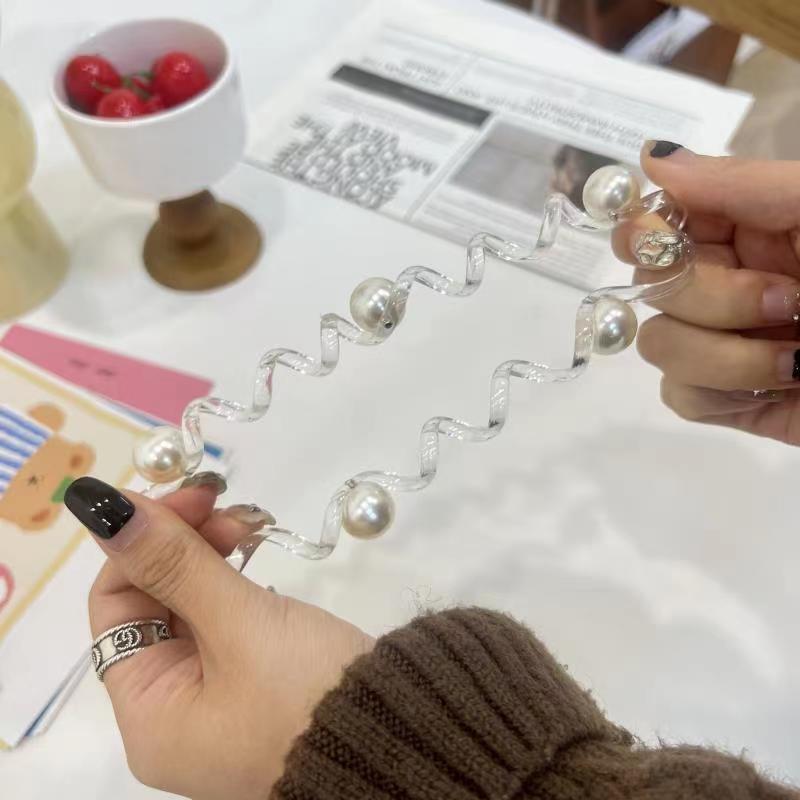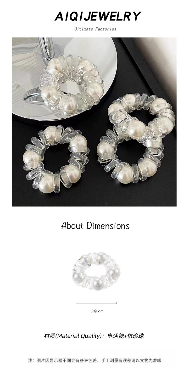 New Simple Pearl Transparent Phone Line Hair Ring Headwear Durable Rubber Band Hair Rope High Sense Elegant Headdress 中文版