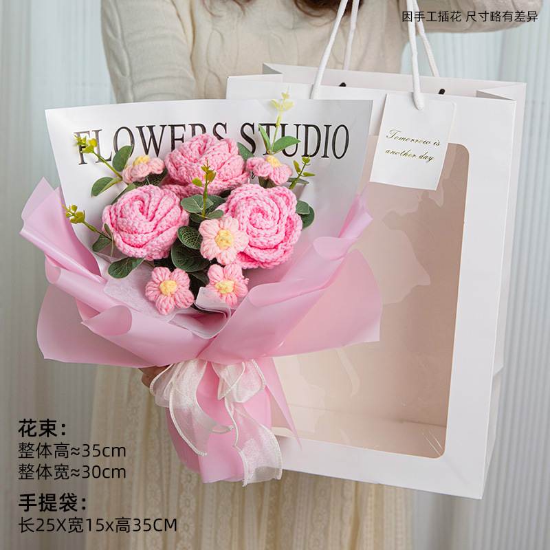 gradually varied pink 3 roses +5 little daisy + gift bag lamp beads