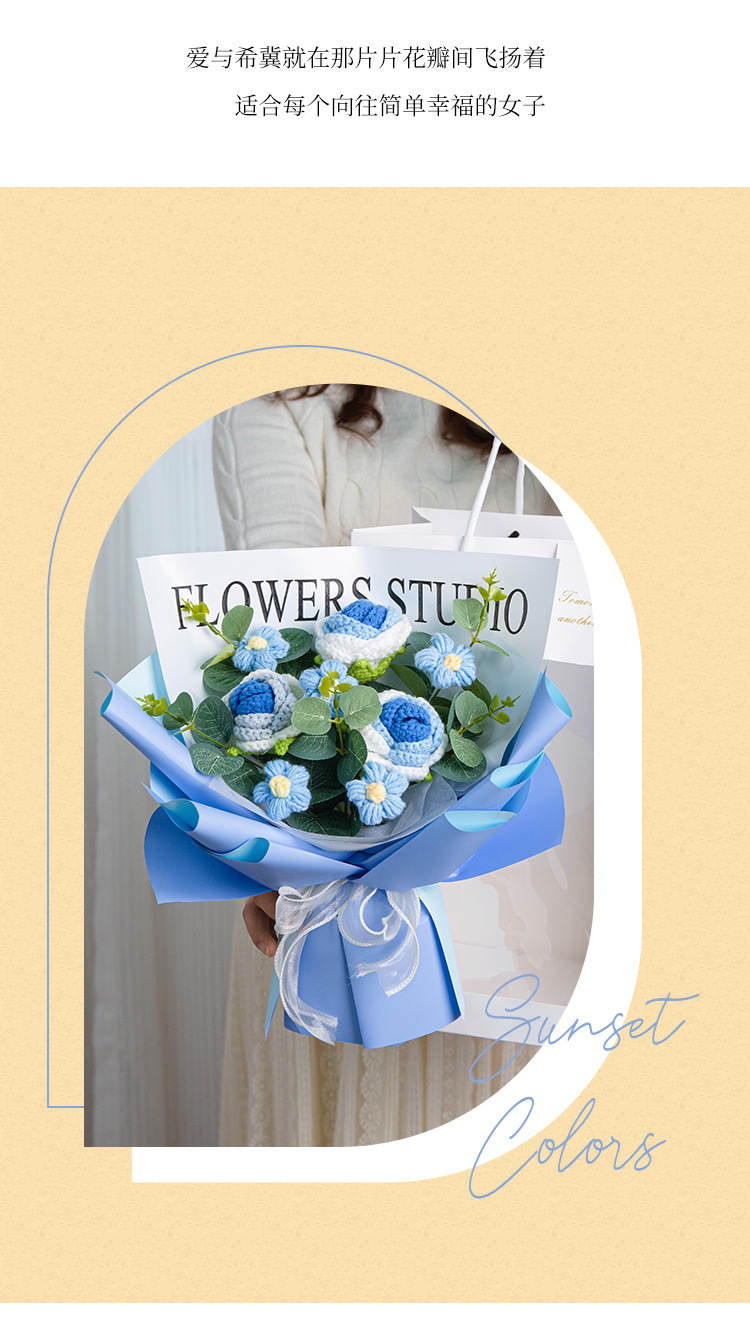 gradient blue 3 roses +5 little daisy + gift bag lamp beads