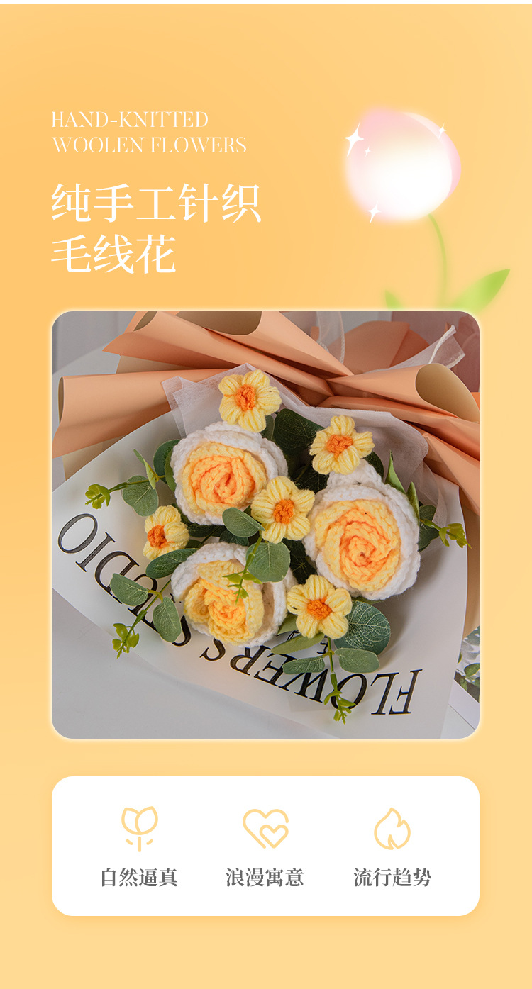 gradient yellow 3 roses +5 little daisy + gift bag lamp beads