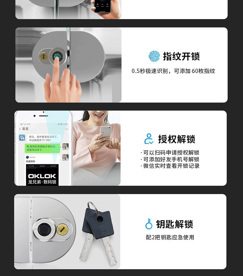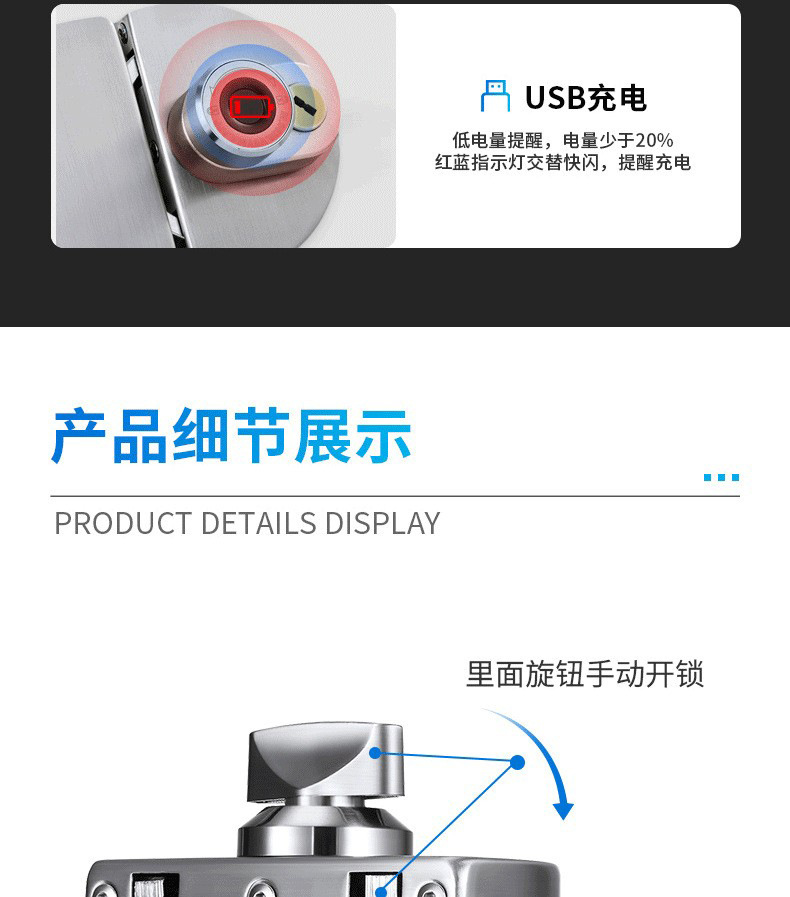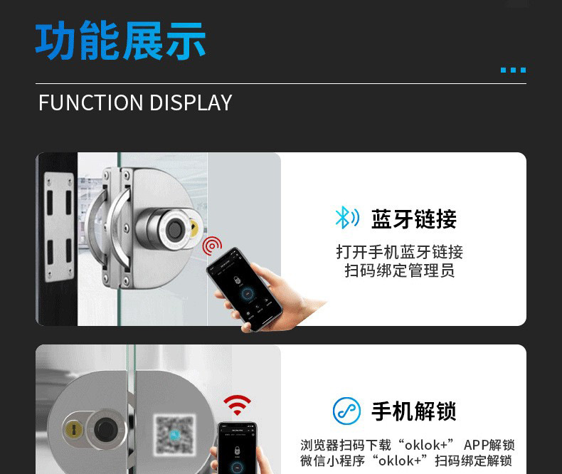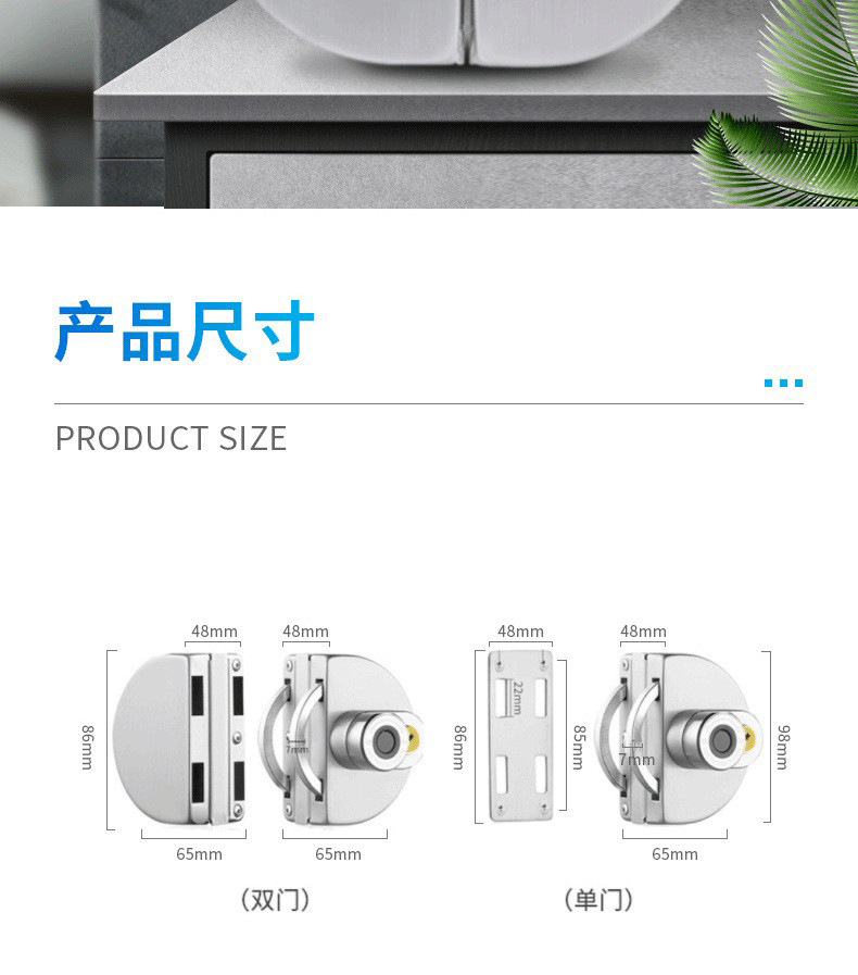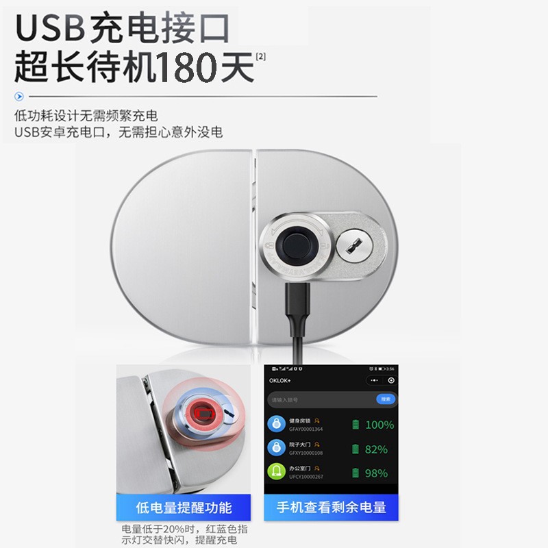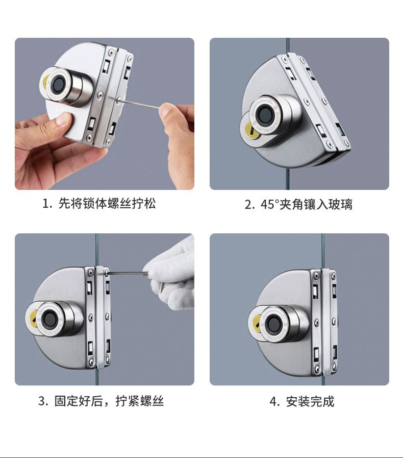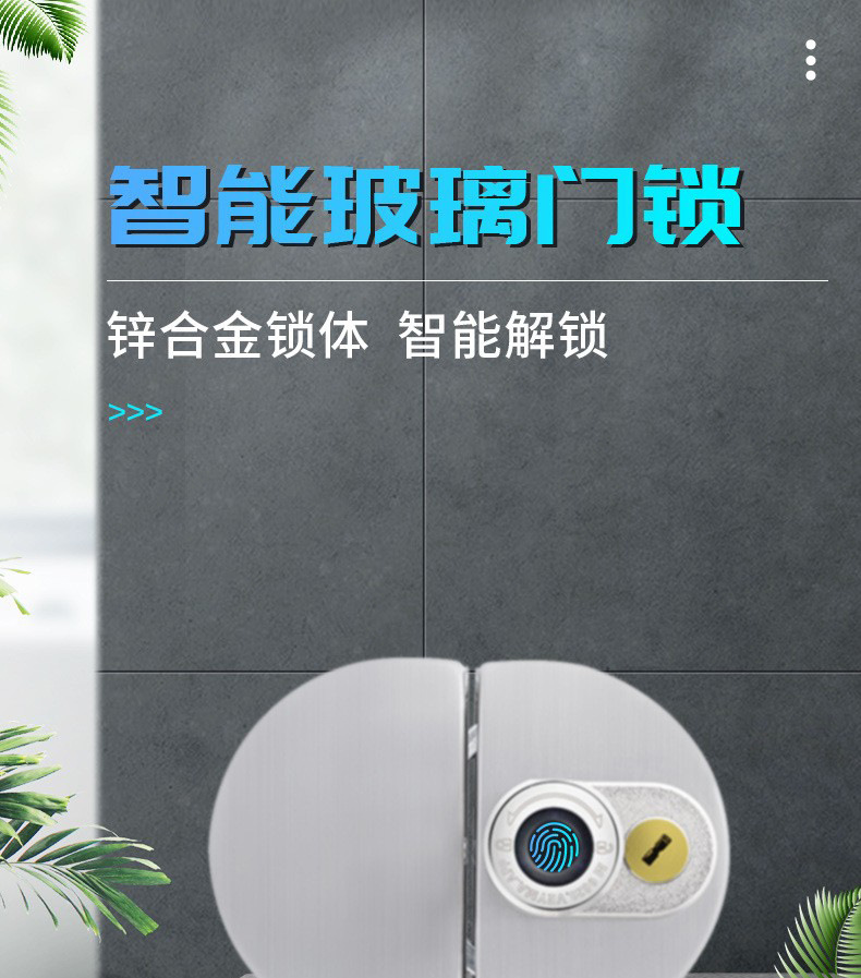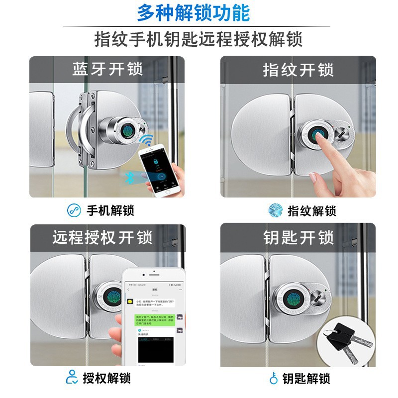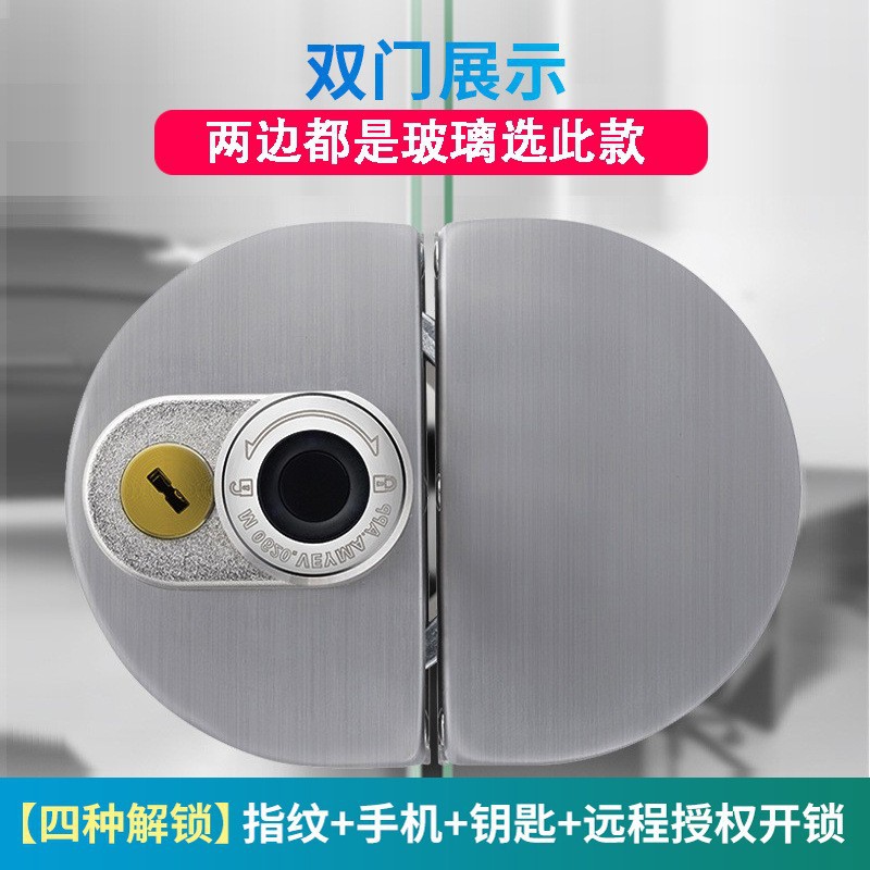 Office glass door intelligent fingerprint lock with key, no drilling fingerprint remote Bluetooth door lock, shop electronic lock