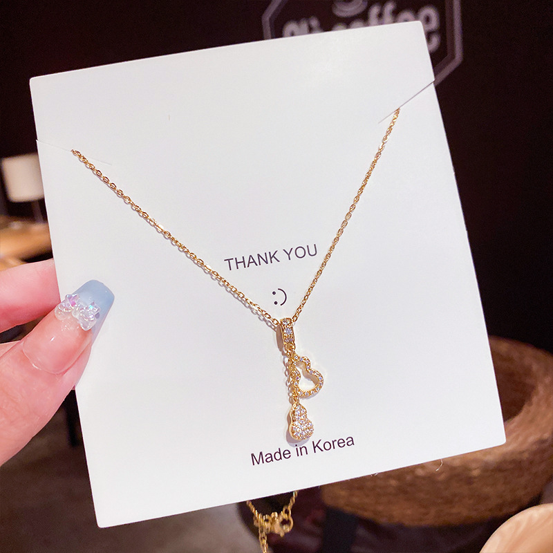 Women's Korean-Style Multi-Layer Gourd Necklace Niche Design Internet Celebrity Vintage Zircon Pendant Sweater Chain Titanium Steel Clavicle Chain 中文版