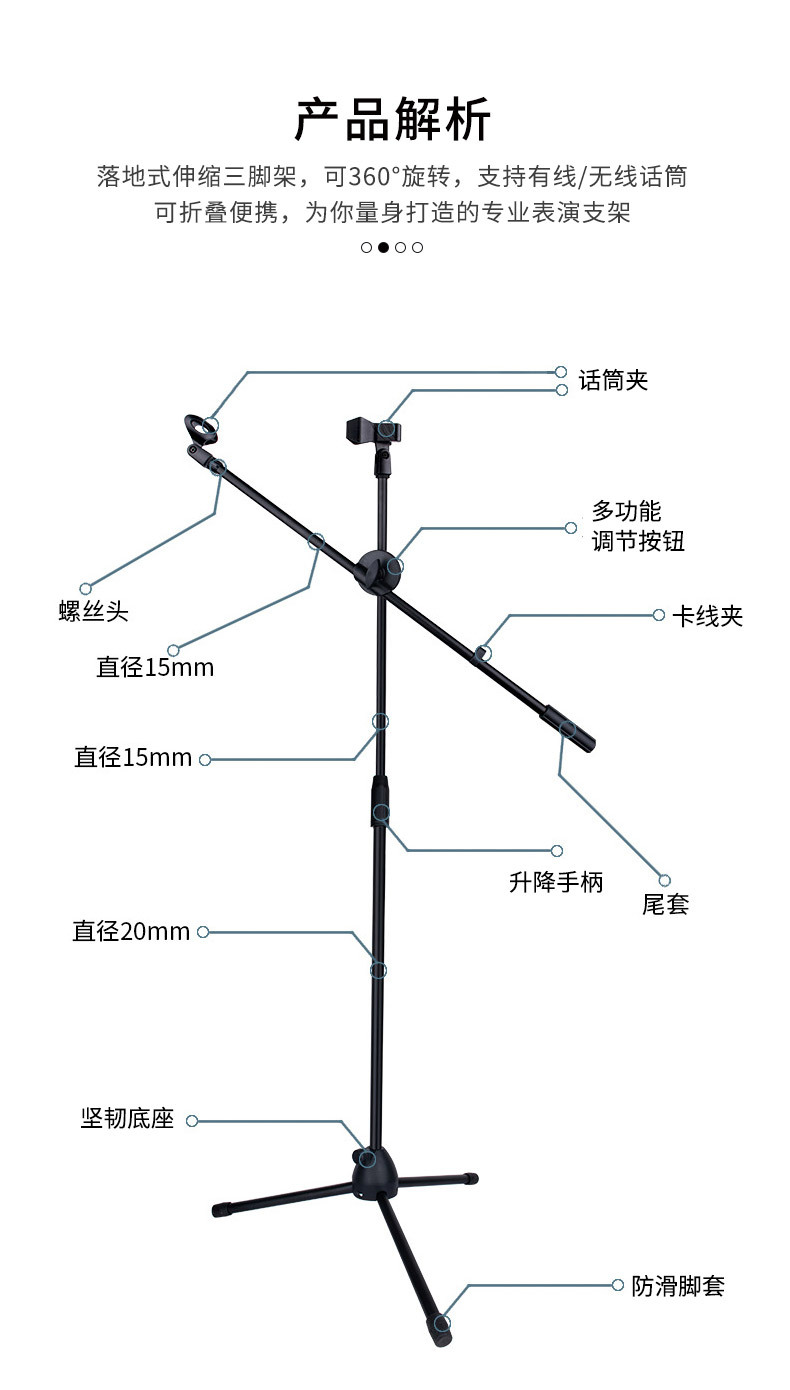 Microphone Stand Wholesale Live Karaoke Recording Floor Lifting Microphone Stand Stage Performance Vertical Microphone 中文版
