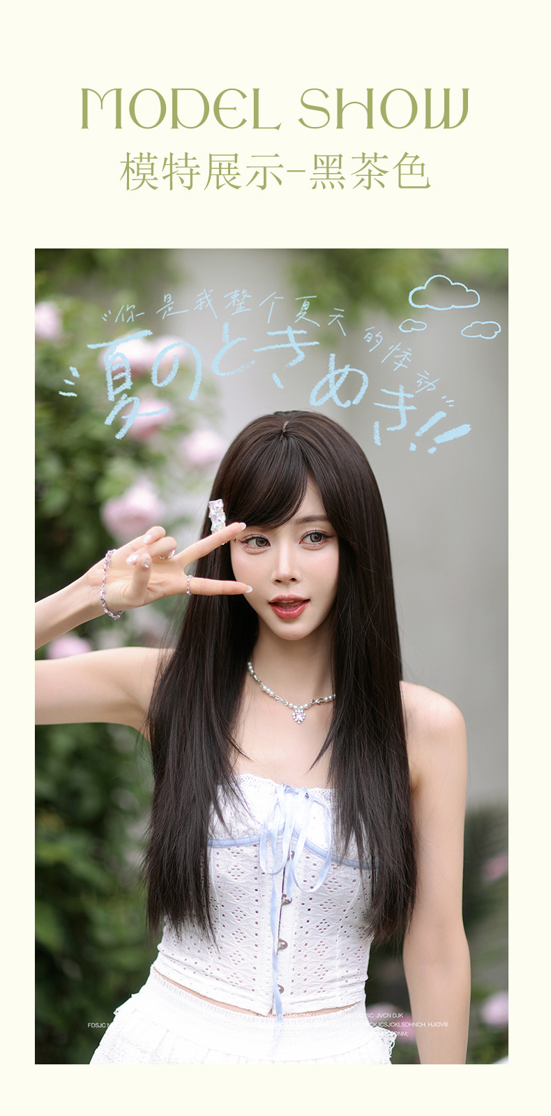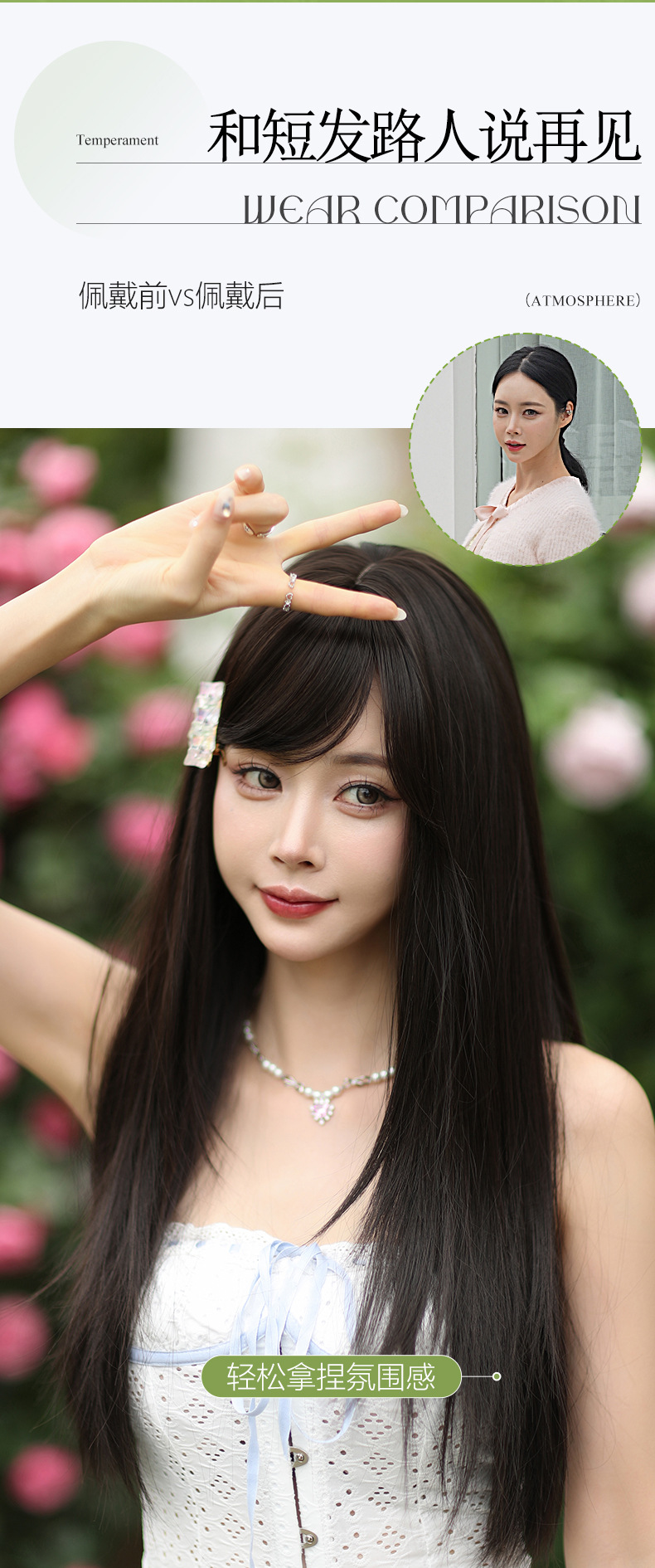 The effect, the model wears a wig and then uses her hands to push it apart and grab it to make it fluffy, showing that wigs have a lot of room for styling. Sometimes, a single wig can create different effects.
