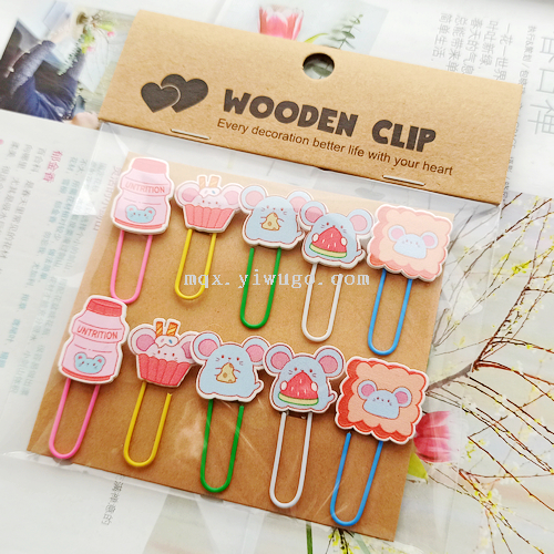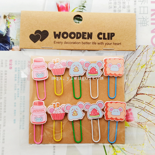 wooden cartoon animal modeling colorful clip japan and south korea stationery children's cute paperclip fashion paper clip