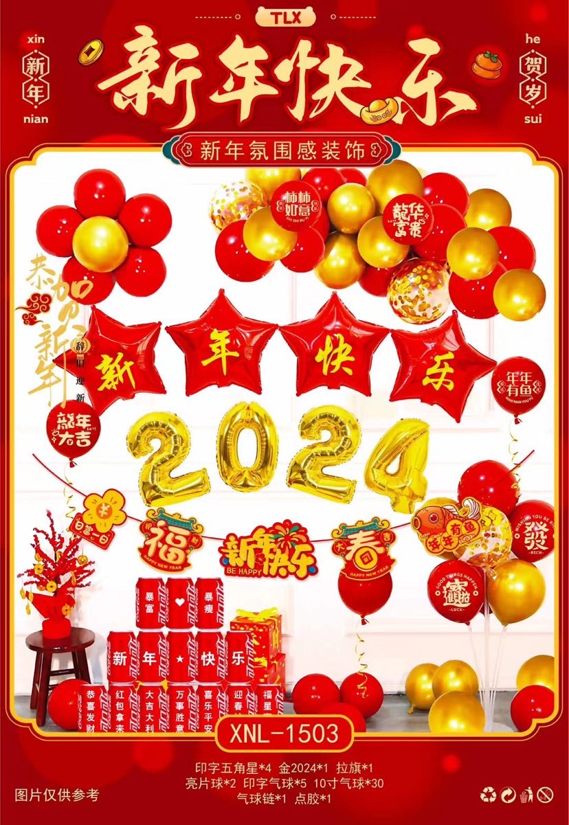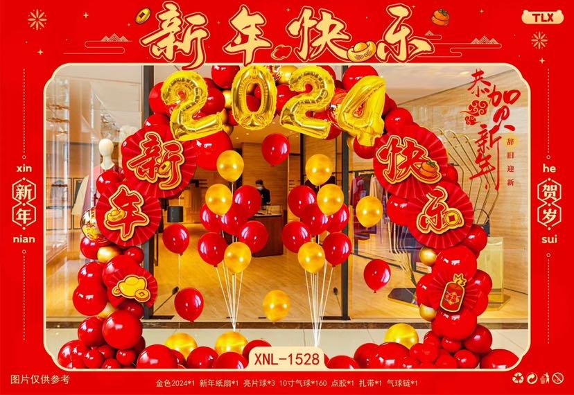 新年气球2024新年快乐布置气球春节福字气球龙年跨年元旦装饰批发