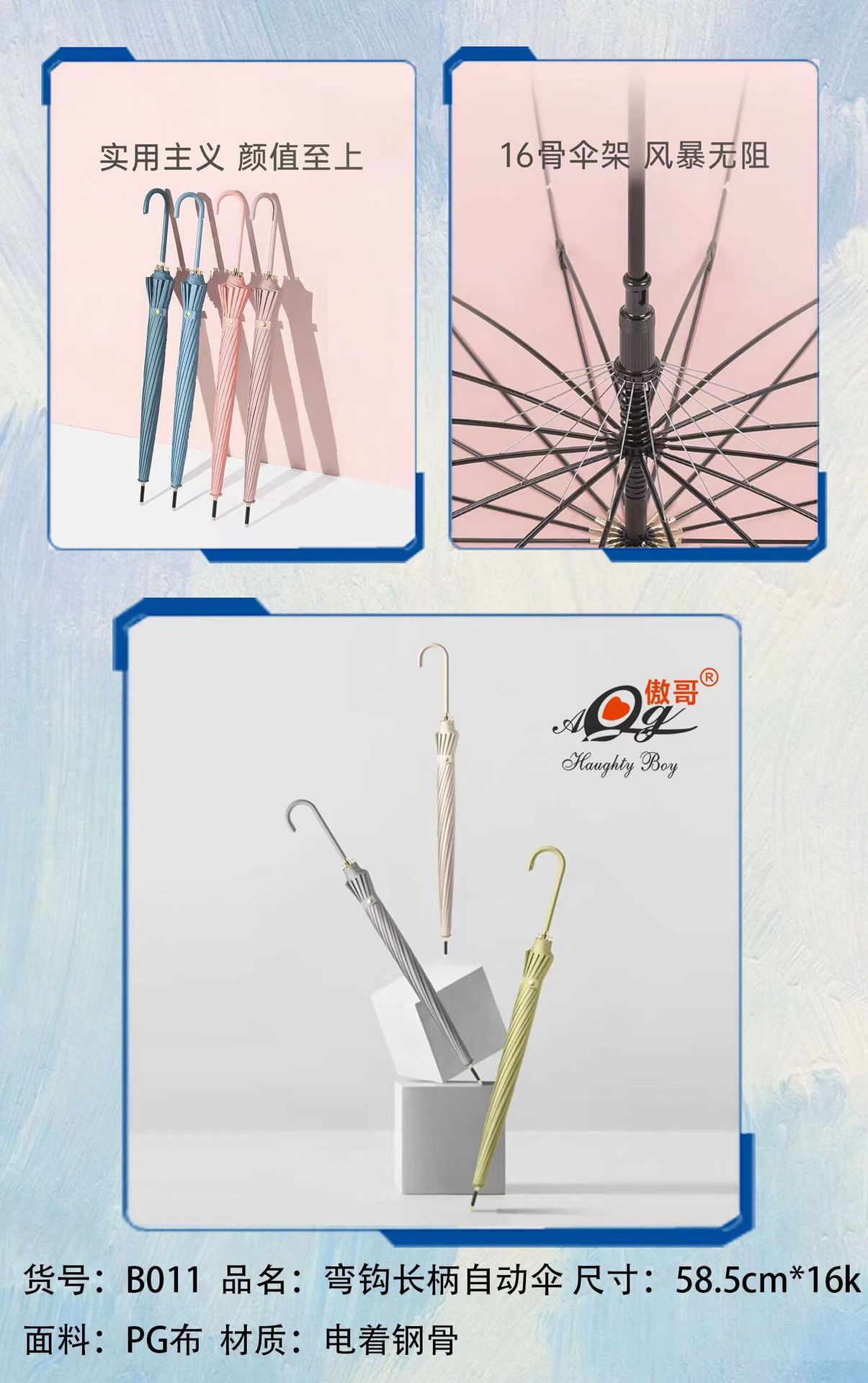 2023 new style small fresh long handle 16 bones straight umbrella umbrella advertising logo umbrella all-weather umbrella