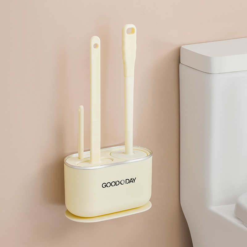 cream 2-in-1 package wall-mounted toilet brush