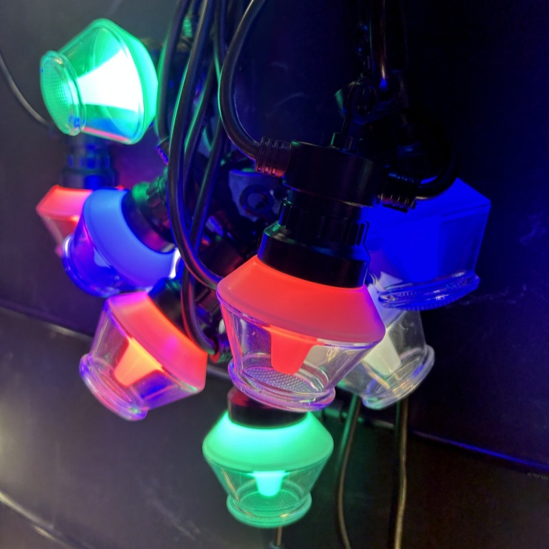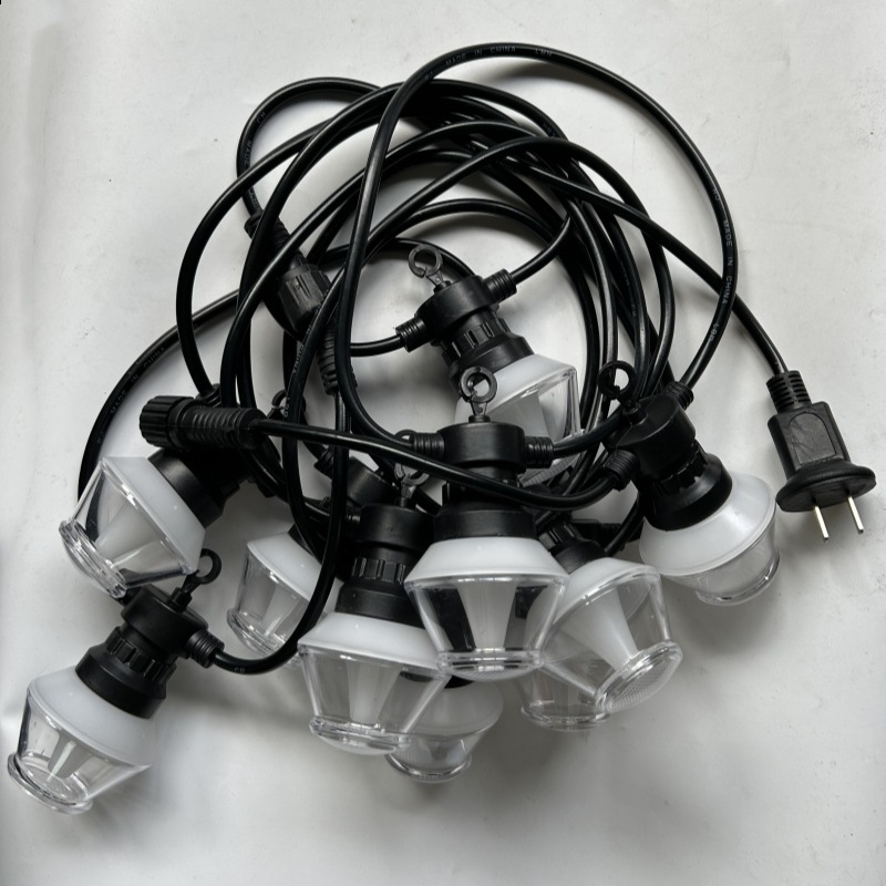 LED Diamond String Lights with transparent shells and colorful lights, the actual product is very beautiful. There are 5 meters with 10 lights, 10 meters with 20 lights, and RGB. The distance between the light balls is 50cm, and each set has male and female connectors, allowing multiple sets to be freely connected. The black rubber cables are made of pure copper wire, offering high quality! The default packaging for each set is a PP bag (color box packaging is an additional price), and 20 sets make up a case. Each case is packaged in a cardboard box.