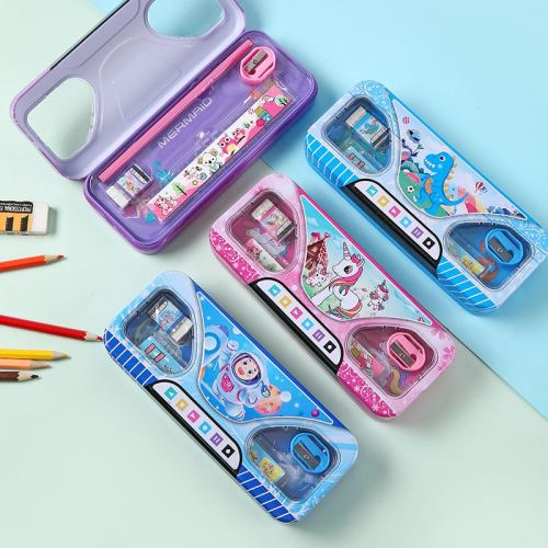 transparent multi-functional double-layer high-looking pencil case cute large capacity pencil case for primary school students cartoon pencil case for children 中文版