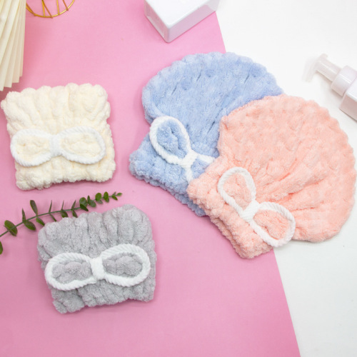 cloud grid hair-drying cap thickened water-absorbing quick-drying princess hat coral fleece towel head wiping shampoo towel shower cap