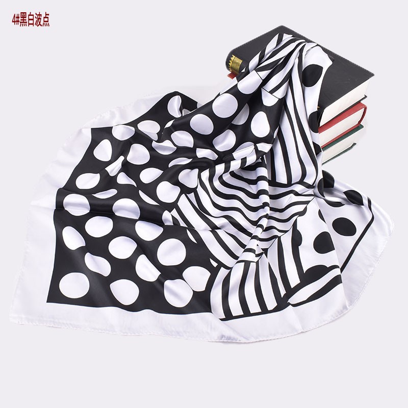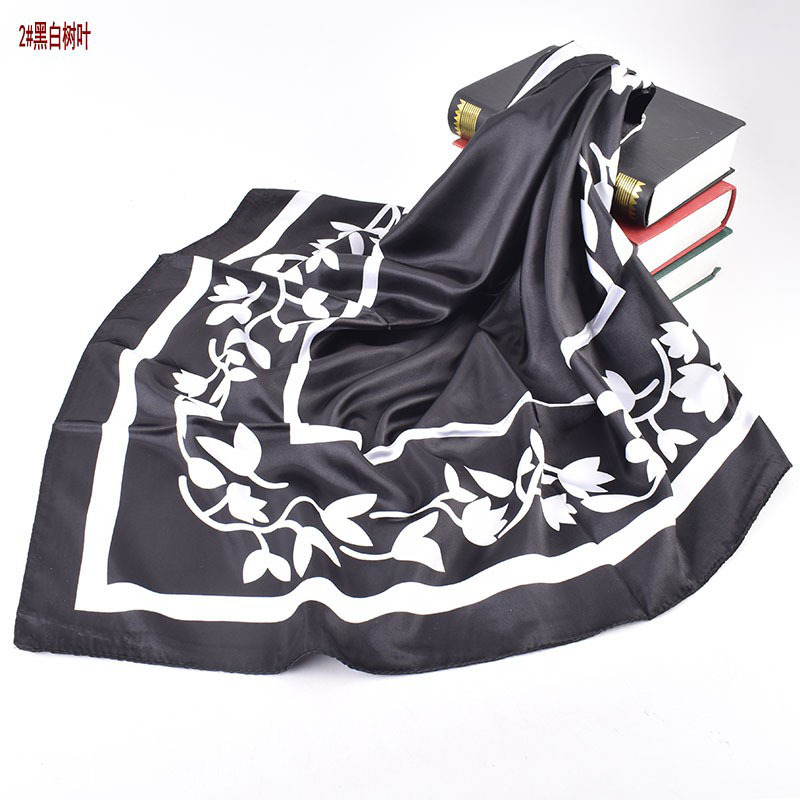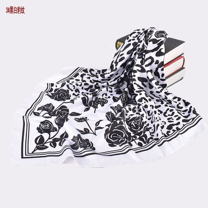 2023 autumn and winter new foreign trade scarf black and white simple printing light luxury silk scarf 90 satin high sense large kerchief
