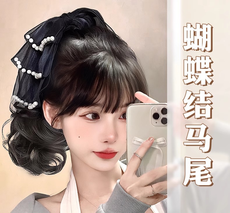 water ripple pearl butterfly ponytail [natural black-25cm]]
