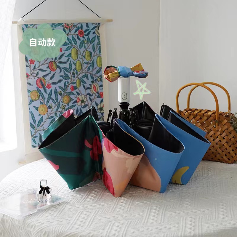 three fold automatic black rubber powder peony