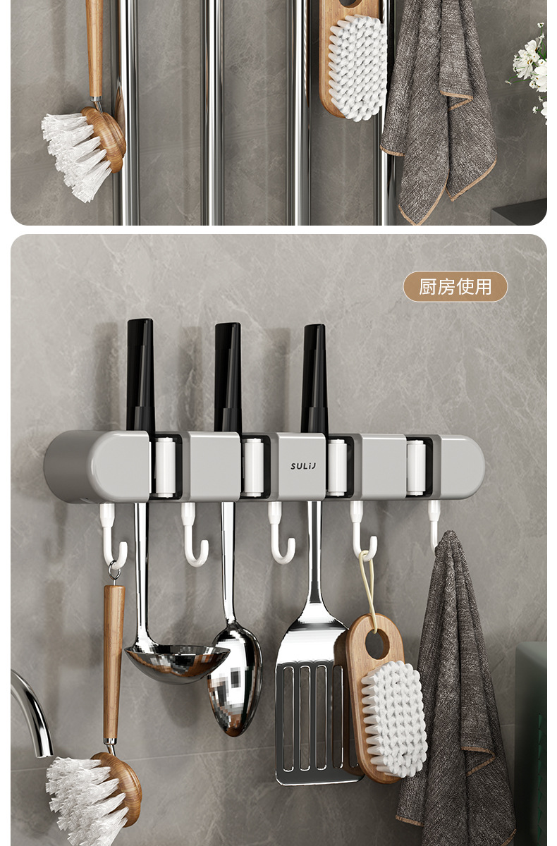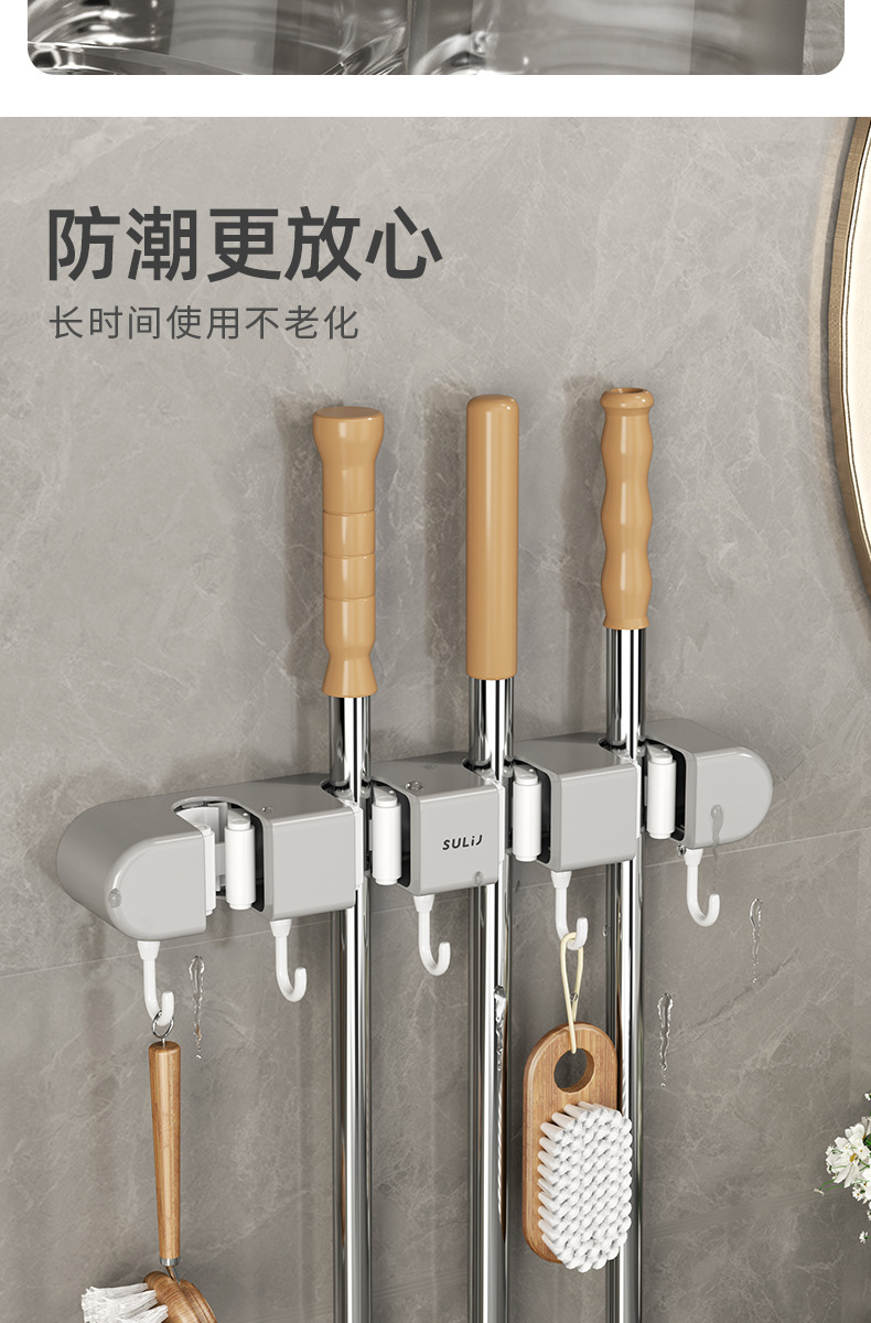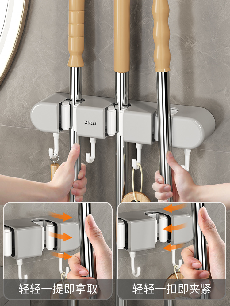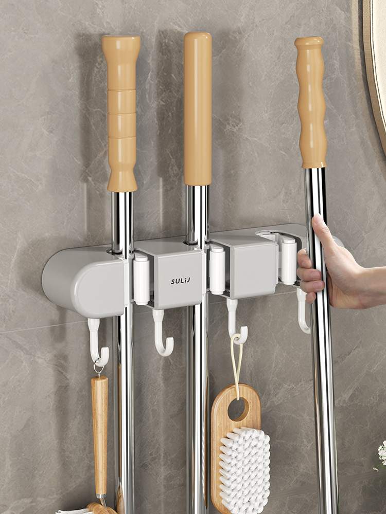 multifunctional mop rack [3 mixed gray]]