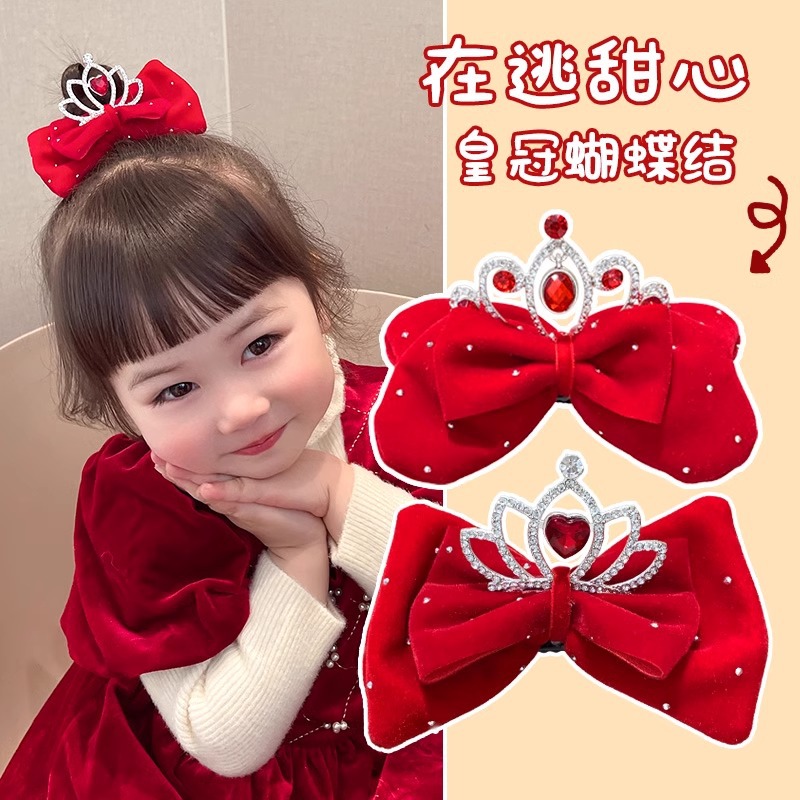 1# red paillette crown + bow barrettes 2-piece set (value two-piece set)