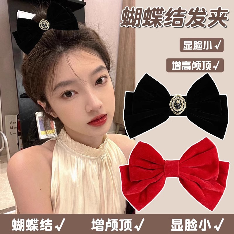 10# black velvet ribbon big bow [spring clip]]