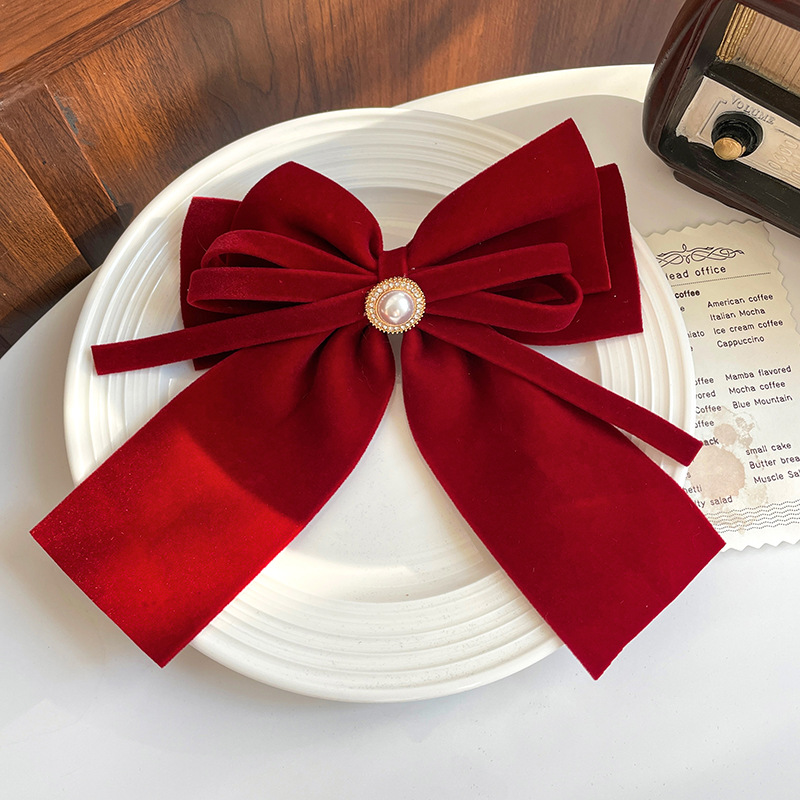 9# burgundy velvet ribbon big bow [spring clip]]