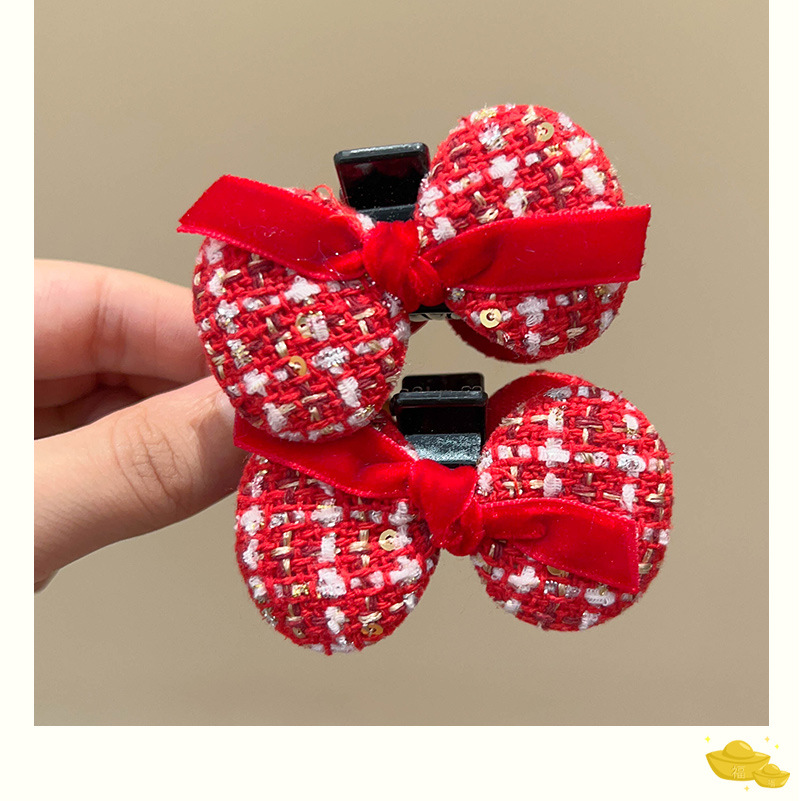 red beads gold flash bow 4-piece set