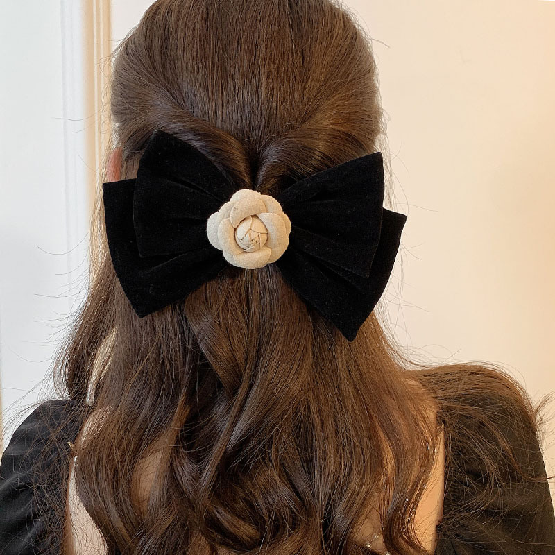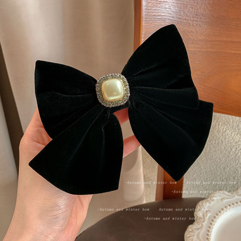 black bow pearl-spring clip
