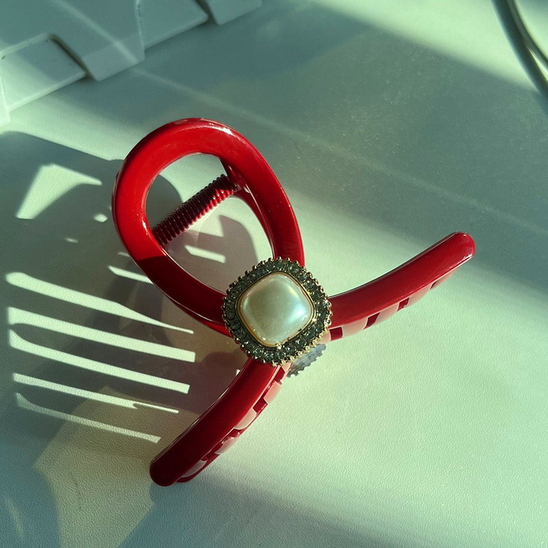 cropped hair clip-shiny red
