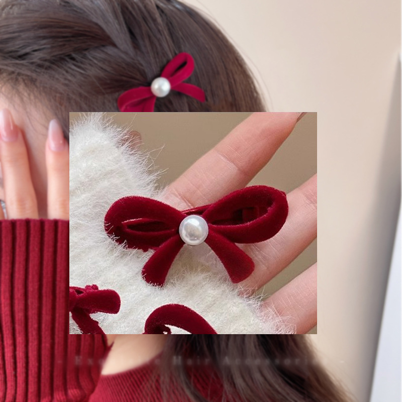 cropped hair clip-butterfly wine red