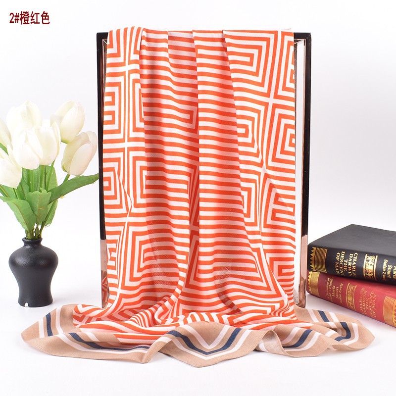 2023 new korean style striped all-matching fashionable scarf scarf herringbone velvet 90 square scarf light luxury scarf wholesale