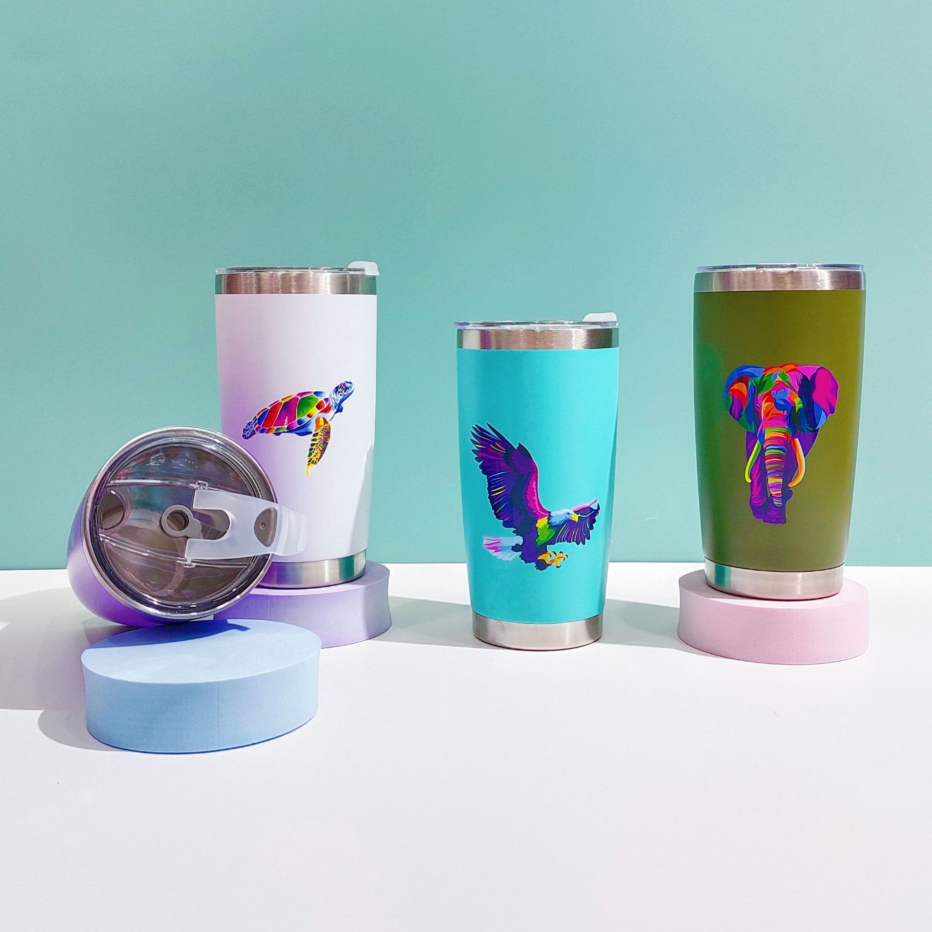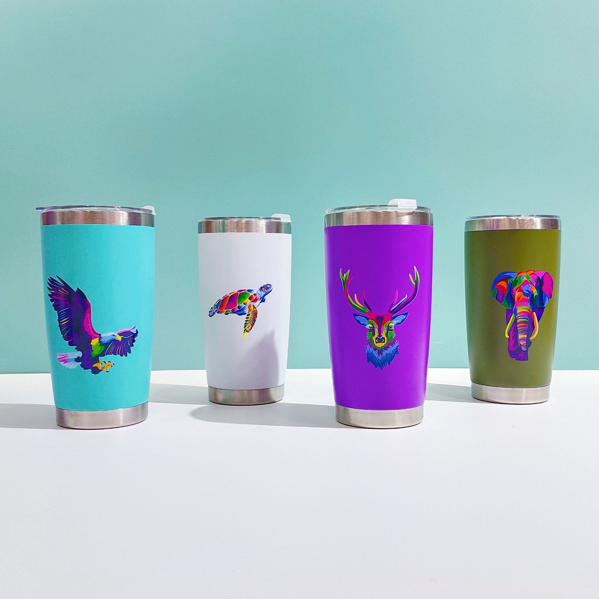 factory direct sales cross-border 304 stainless steel vacuum cup 20oz double-layer vacuum vehicle-borne cup simple animal cup 中文版