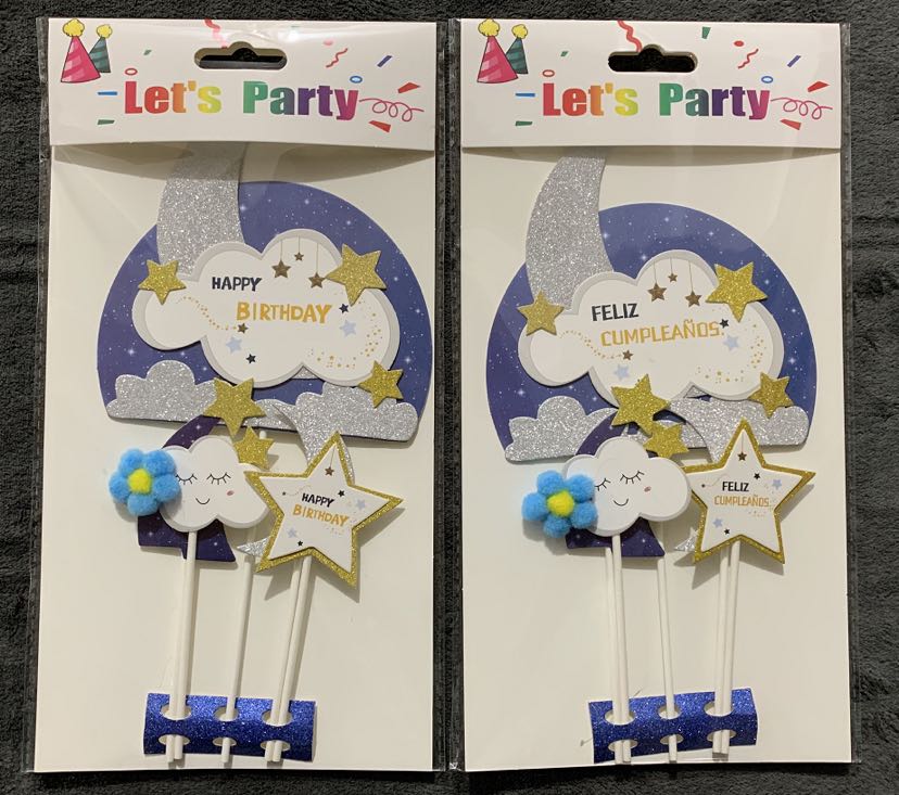 baking cake topper rainbow card pink and blue balloon birthday cake insertion pink and tender party decoration plug-in collection 中文版