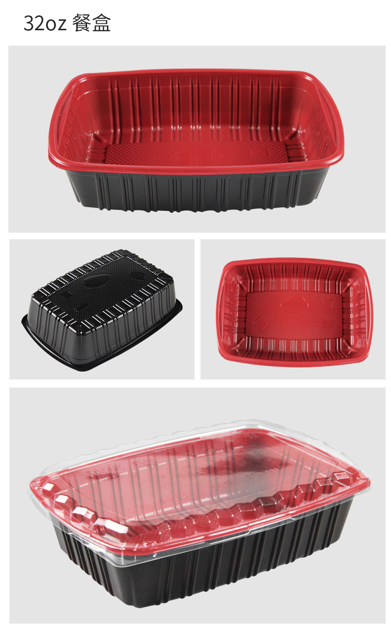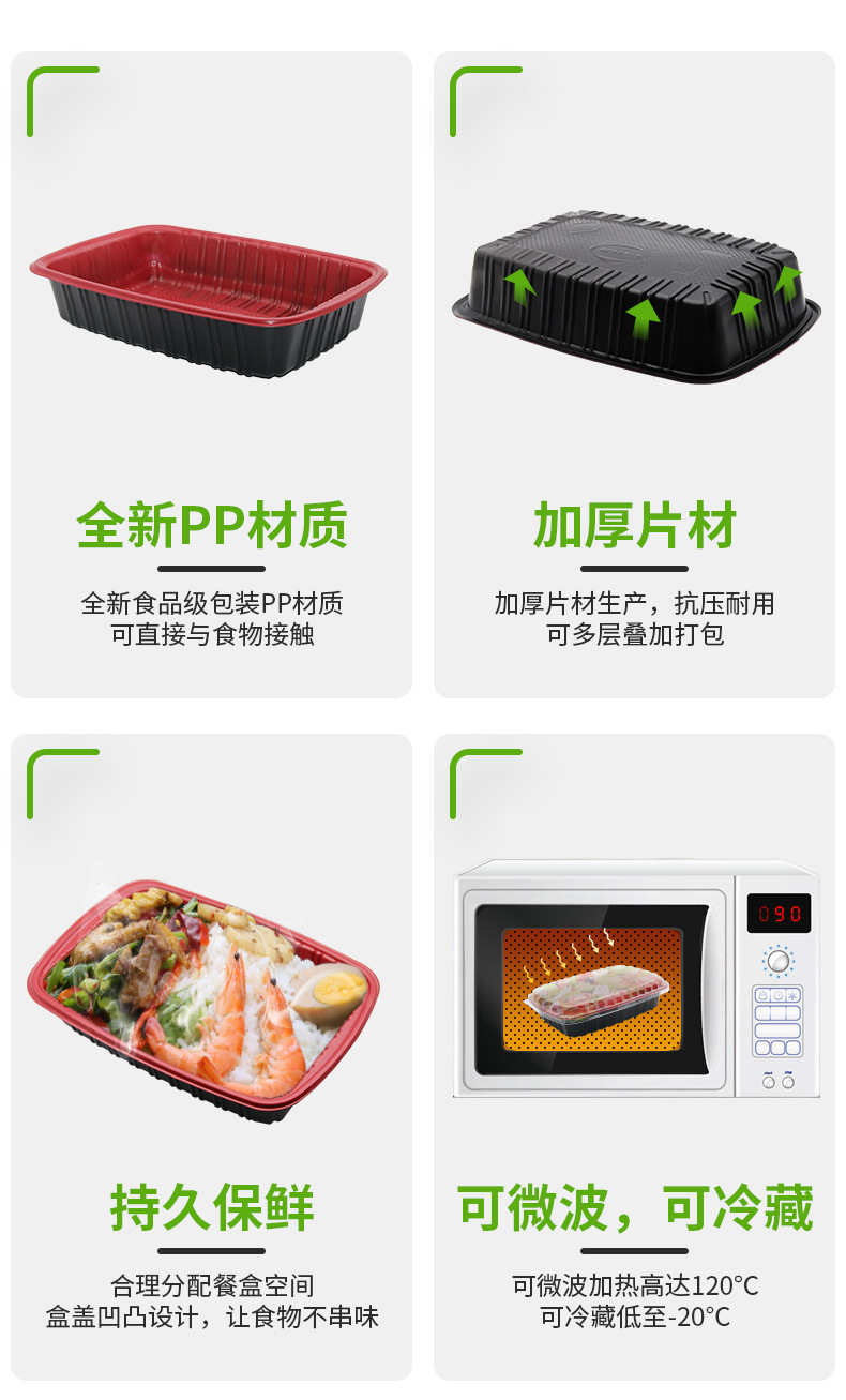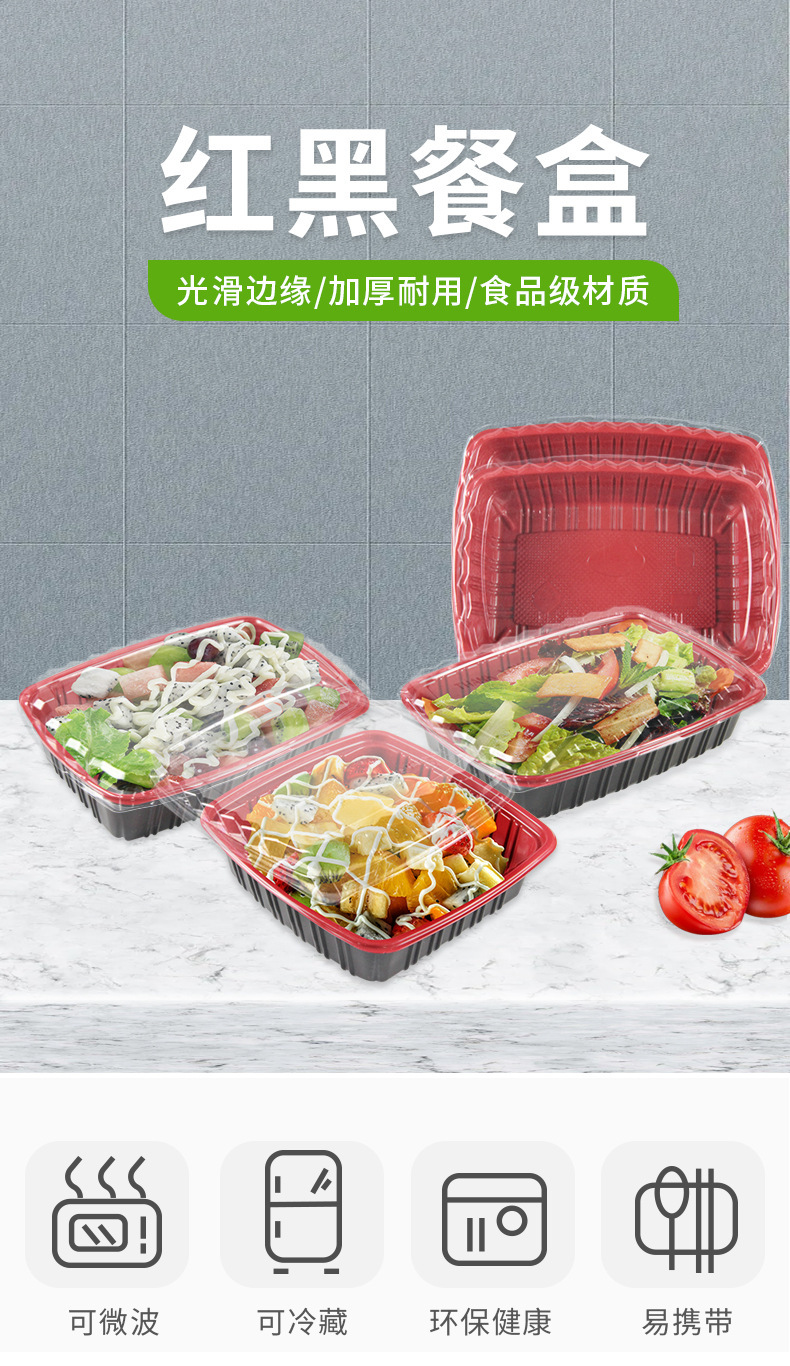 Disposable Lunch Box Pp Plastic Lunch Box Manufacturers Produce Takeaway Packing Box Red and Black Fast Food Box Environmental Protection