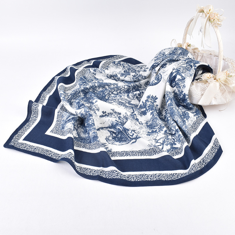 2024 new simple graffiti ink painting all-match scarf scarf herringbone velvet 90 kerchief scarf outer shawl