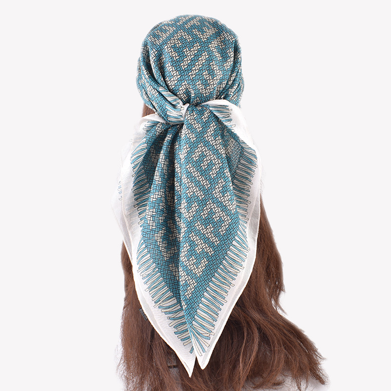2023 autumn and winter new foreign trade scarf korean simple plaid printed light luxury silk scarf 90 mirror silk square scarf batch