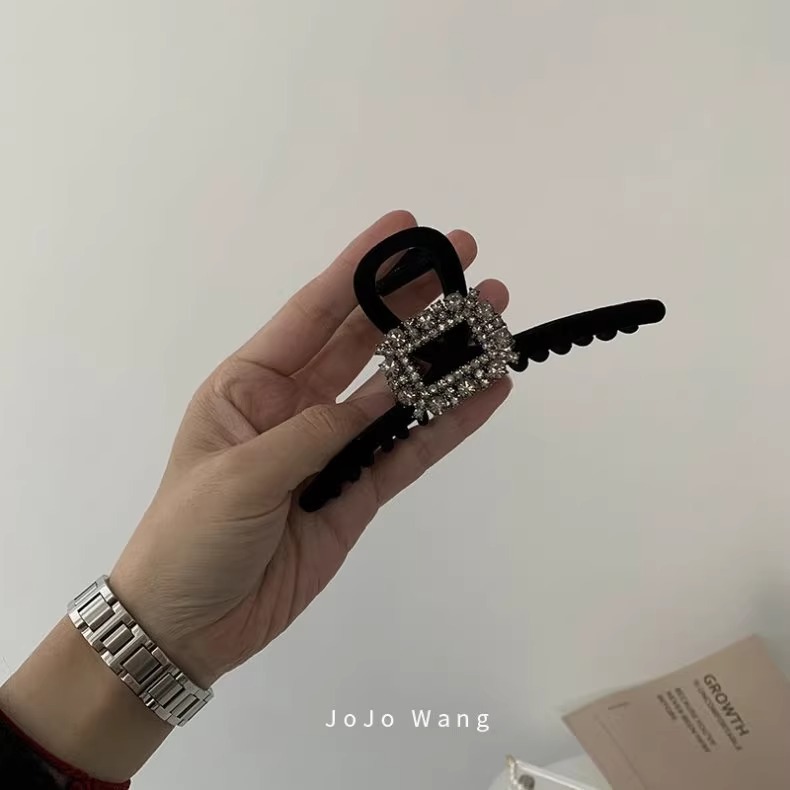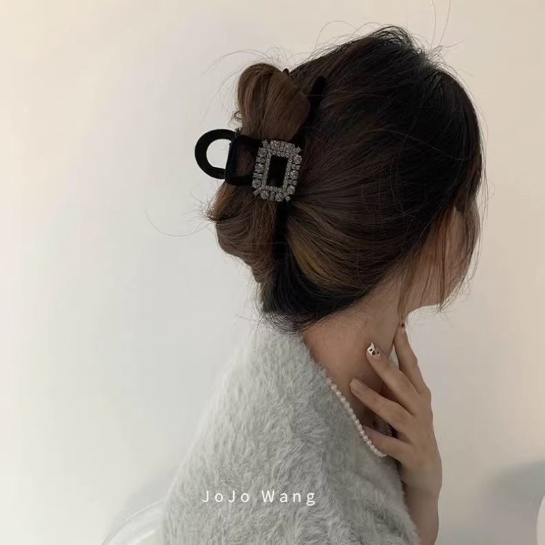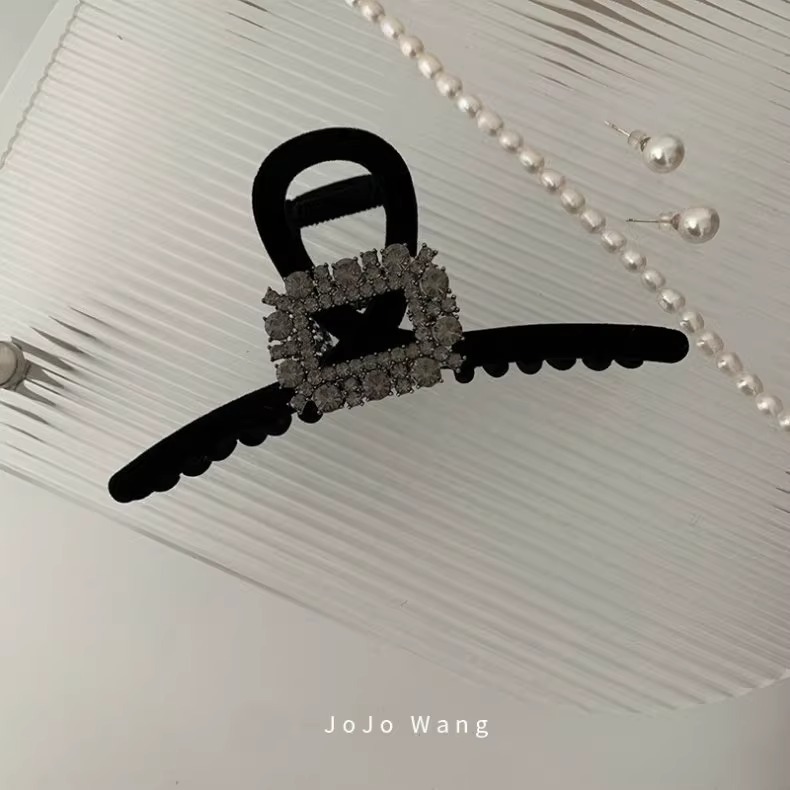 new velvet rhinestone hair claws ~ black